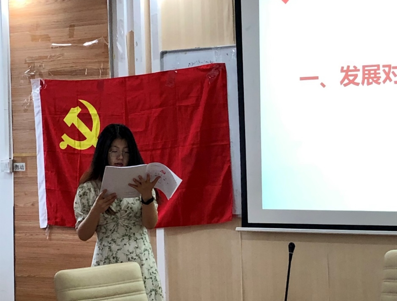最后,党员同志进行无记名投票,并由支部书记宣读支部大会决议。最终,3名同志均被发展为预备党员,她们也分别发表了自己的感想,一致表示感谢支部其他同志的帮助和付出,自己要更加积极向党组织靠拢,更严格要求自己,争做合格党员! 在会议接近尾声时,支部书记带领全体老党员和3位新发展党员一起宣读入党誓词。此次发展大会圆满结束。