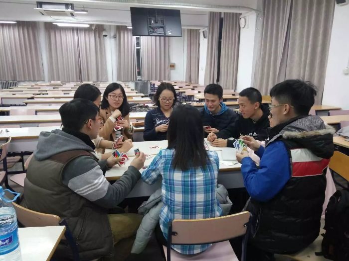 12月16日晚8点,心理学院13级本科3班在教二208成功举办了第三届棋类比赛活动。 在去年与前年12月中旬,由13级本科3班举办的连续两届棋艺大赛受到了全年级同学的欢迎,不少同学表示期待在大四能有第三次的比赛,因此这项棋艺游戏活动在大家的期待下如期而至。今年的“棋上加奇”,新增了棋类及竞技环节。棋类竞技与自由参与游戏同时进行,同学们既感受到竞技的紧张氛围,又能够体验自由组队的愉快。最后由主持人李卉子进行颁奖。 本次棋类比赛活动获得了同学们一致好评,可见该活动已成为大家在12月中的美好体验。同学们通过棋牌类的竞技游戏,一定程度地释放了期末阶段的考试及毕业设计开题的压力,能够在棋牌竞技中获得愉悦的体验,也有助于以新的面貌迎接新的一年,能够和同学一起成长,一起娱乐,也能够在今后以饱满的精神一同成长进步。