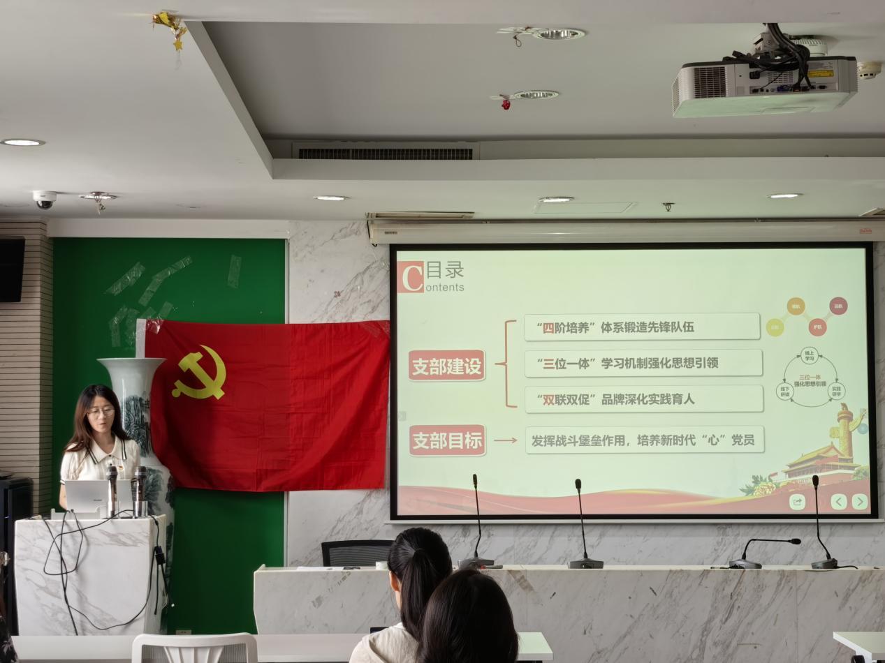 孔小杉同志介绍了积极分子培养工作中使用的“党支部职责与研究生群体特点相结合”“筛选与培养相结合”“日常学习与重点专项提升相结合”三个经验,帮助支部积极分子有高质量的发展。