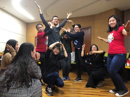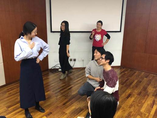 2017年11月21日晚上,爱爱啦 生活指导室在京师大厦二层心理健康服务中心多功能厅推出了一场别开生面的演出暨体验沙龙活动,活动面向学部全体本硕博学生开放,限于场地以及活动形式,控制参与人数在25人左右。分党委副书记王瑞敏老师和生活指导室负责人黄利老师邀请了专注于将即兴派艺术表达引入教育领域的诗曼老师,联合她的即兴派团队创造性地使用即兴戏剧表演支持个体成长,让到场的每个人在轻松释放、角色参与中觉察和感悟,场面互动热烈、高潮迭起、爆笑不断。 本次活动有三个环节:50分钟的演出观看;70分钟的现场体验包括热身暖场、戏剧游戏和即兴短剧的学习与展示;最后30分钟的分享交流,每个环节紧凑饱满。 最后是一场“穿越时空”的即兴表演的展示,以夸大的动作、动作凝固后的转换时空为衔接,让观众随着演员在不同的时空里切换,看似脑洞大开却又合情合理,同样引得场下欢乐不断。 看完了四场精彩的演出后,观众们已经跃跃欲试,迫不及待地要进入第二个现场体验活动的环节。 场面活跃起来后,诗曼老师让大家随意走动,随机喊出一个数字,则这个数字的人数抱成团进行角色扮演:6个人一起演一个大的电冰箱;7、8个人一起演一片原始森林的场景;10余人一起展现出一个庞大的消化系统或生殖系统。每个人都尽心尽力地扮演好自己的角色,似乎那个角色就是为自己量身定做的。 体验部分的重头戏则是即兴表演的练习和现场演出。大家穿梭在不同的时空中,表现着不同角色的自己,足球运动员、皮卡丘、狗狗、钢管舞女郎、武则天……穿越古今中外,穿越真实虚拟,打破传统的规则、伦理的束缚,解锁一个个平时不曾想过的新角色,而那些现实中不敢想象的掐架、出轨甚至下跪求饶,在表演中竟是如此自然和谐,又是这么的理所当然。即兴表演的时空穿梭不仅在于团队成员间的配合,更在于接受对方对当下场景的设定,而任何动作的凝固都是你设定场景的灵感,放下评价,认真感受他们的动作,倾听动作的声音,你将不知不觉来到一个全新的、不一样的时空,探索着未知的自己。 最后环节是活动的提问总结,每个人都收获颇丰,分享了自己的感受。诚然,生活中的我们都有着不同的角色,或是老师,或是学生,我们都习惯了戴着适合角色的面具“出演”,而忽略了内心深处自我的真实情感流露。在即兴世界里,每一个人都是“演员”,都可以是各种角色,体验这个角色的喜怒哀乐悲,体验着处处都是戏的生活,跳出角色的框框,还原开放性的自我,这对在场的大家来说,何尝不是一种对自身的探索和超越?
