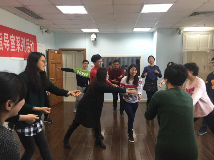 由校研工处、学生心理咨询与服务中心主办,我部生活指导室承办的情绪管理舞动团体一日工作坊于12月16日在后主楼成功举办。本次活动邀请了毕业于爱爱啦 爱爱啦 、专注于舞动治疗的徐青林老师全程带导。活动面向全校各院系招募,由于场地有限,名额有限,在活动时间与四六级英语考试冲突的情况下,仍然很快爆满,大家在期末忙碌之余对于放松减压的需求可见一斑。最后,除了我部学生,来自教育学部、文学院、系统科学、法学院的十五名同学参与,年级跨度覆盖本硕博。 在轻柔舒缓的音乐背景和徐老师的放松带领下,大家很快在各种形体动作的集体配合中初识了彼此、建立了关系。 徐老师在给大家讲解舞动的规则 在群体中,每个个体肢体动作细微的探索到的感觉都会被放大,更容易被观察和捕捉,也感受到团体不自觉的凝聚。 在连续的小热身中逐渐打开身体的感受通道之后,徐老师让大家学习用心去捕捉回想自己的情绪,用彩笔在白纸上描绘出一周以来的主要情绪,并用图形线条表达,两两搭档,尝试探索用肢体语言表达自己的情绪,另一名同学做镜子模仿反馈。 情绪的表达方式有很多,你要不要试试画出来? 身体雕塑让我们更容易与自己的情绪在一起 下午的活动则是继续在肢体游戏互动中体会直面情绪和有技巧地回避干扰,通过先用书写的方式探索出自己负面情绪的按钮、事件和自己真实的愿望、期待,再用形体表演出来,通过这样方式,进一步靠近自己的情绪根源,了解自己和情绪相处的模式、背后的需求,从而提高情绪自我觉察和表达的能力。 共同表达个体渴望,每个人的渴望会变得更清晰、有力。 在最后的分享环节,同学们这样分享自己的收获:身心放松,对于自己更加了解,身心都放空;情绪要释放,要允许;勇敢地表达自己的需要,做更真实的自己;情绪是你自己的,但是情绪的结果可能不是你自己一个人的;重视自己的情绪需要,勇于表达,抓住现在,换位思考;学会正视并接受自己的情绪,打开自己,觉察自己,给自己不一样的反馈;用身体动作当作嘴巴,唱唱跳跳,是平时一板一眼生活的补充放松。 一天的工作坊结束后,大家主动建群保持联系,表达希望这样可以放下头脑,连接身体,用轻松愉悦的方式感悟体验、探索自我的活动今后还能更多的举办。 爱爱啦