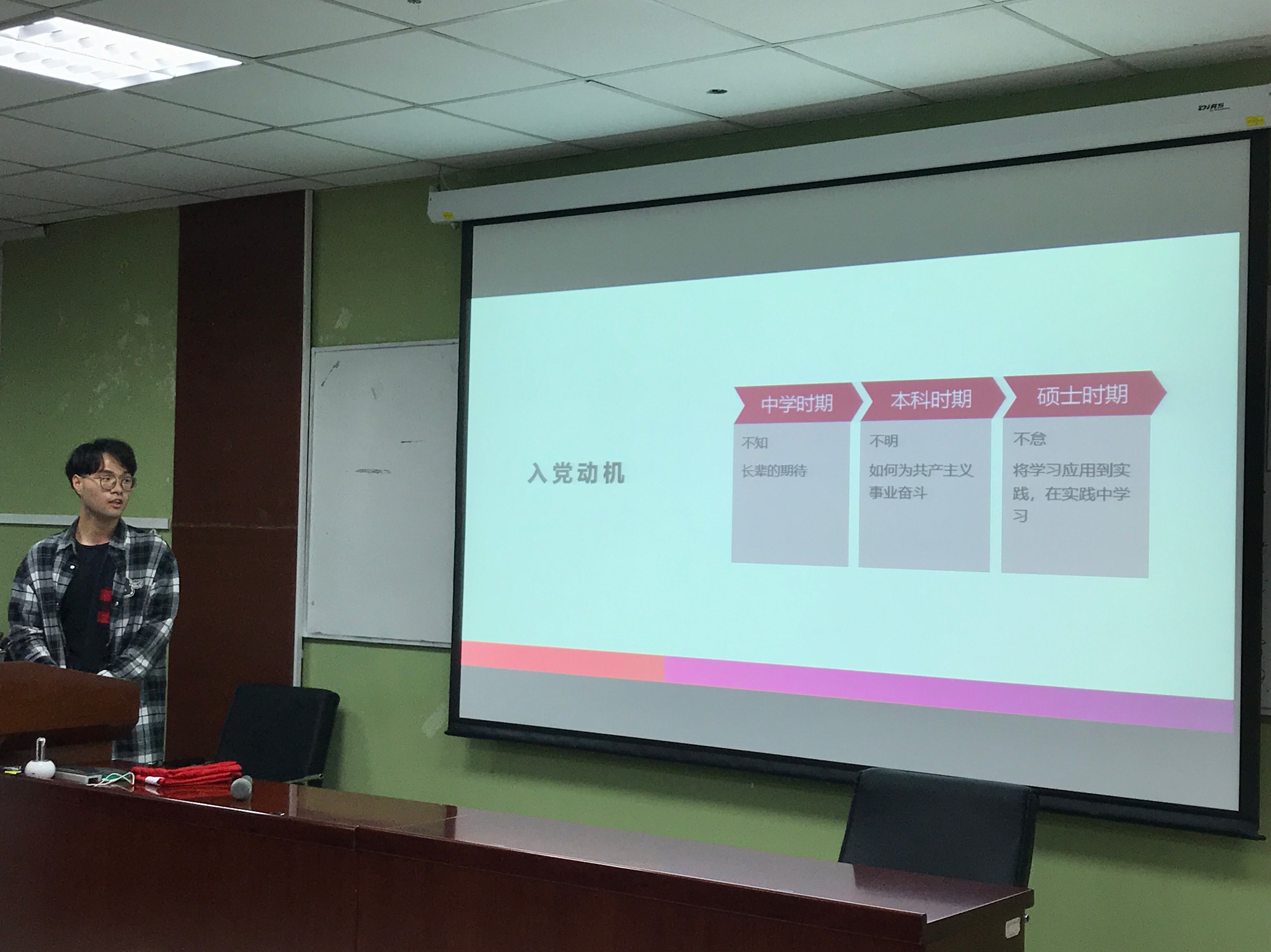 2020年9月27日晚八点,心理学院19级学硕第四党支部的党员们准时到达会议室,准备召开本学期第一次党支部会议。本次会议总结了党支部成员们假期的学习与实践活动,同时布置了本学期即将开展的工作与活动计划。 本学期第一次支部委员大会正式开始 正式会议开始前,全体党员起立,合唱国际歌。 会议开始后,党支部的四名支委与新加入的三名同学首先进行了自我介绍。随后支部书记总结了假期的实践活动成果,并介绍了本学期的工作安排。 支部书记介绍本学期党支部工作安排 本次会议的第三项内容是党支部四名积极分子转预备党员的预答辩。大家精心准备了PPT与答辩资料,以饱满的精神面貌完成了预答辩,在场的其他党支部成员也提出了仍存在的问题与中肯的建议,现场交流氛围热烈。 四名积极分子参与预答辩 本次支部党员大会总结了过去的实践经历,安排了本学期的活动计划,同时通过预答辩的环节带领大家也回顾了自己的入党动机,提醒我们时刻保持初心。不仅大家受益匪浅,也为支部未来的工作开展打下了良好的基础。 供稿 | 心理学院19级学硕第四党支部 文 | 徐慧 图 | 徐慧 |