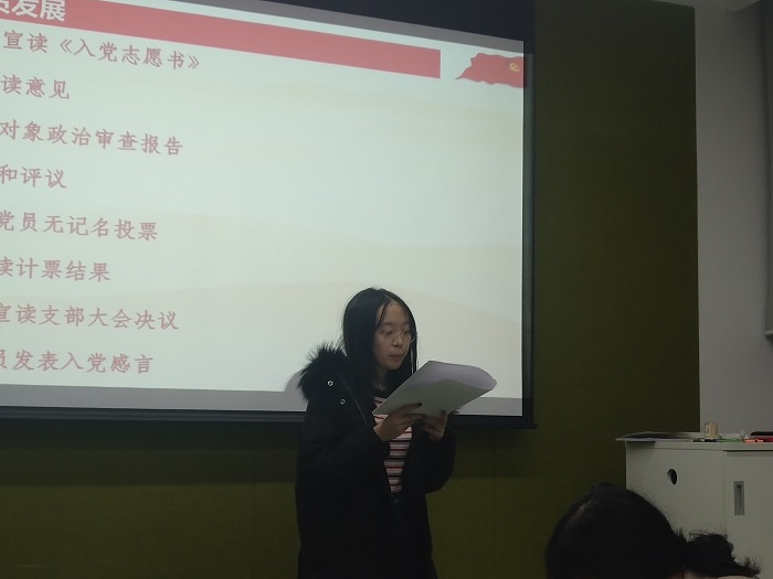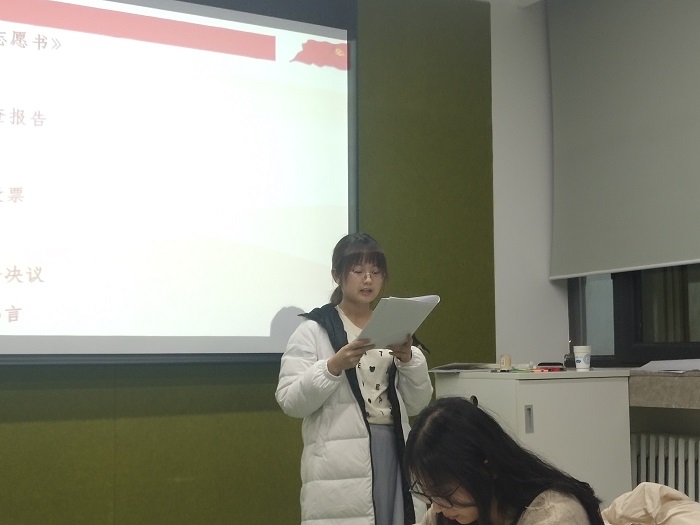 2019年11月26日下午19:30,爱爱啦 本科生党支部2019-2020学年秋季学期第三次预备党员发展大会在双创中心308小组讨论室召开,会议由支部书记陈作为主持。此次大会分别针对发展对象李伊凡、吕煦彤和王馨仪三位同志的入党申请及相关情况进行了讨论和表决。 全体在场人员合唱《国际歌》后,陈作为同志对本次大会的流程和发展对象顺序进行介绍,随后李伊凡、吕煦彤和王馨仪三位同志分别宣读了他们的入党志愿书。 三位发展对象详细地阐述了自己的入党动机,并汇报了确定为入党积极分子以来在思想、实践、学业和工作中所做的努力和获得的成长。 第一介绍人宣读介绍人意见后,在场党员对发展对象的思想、学习和工作等情况进行了民主评议。大家肯定了各位发展对象在各方面的优秀成长和表现,同时针对存在的不足提出了有价值的意见和建议。最后由全体正式党员进行不记名投票。 三位发展对象均被发展为预备党员。在入党感言中,他们感谢支部各位党员同志的认可,一致表示要更加严格要求自己,继续发挥自己的长处,不断弥补自己的不足,向优秀的党员前辈学习。 会议最后,支部书记陈作为同志带领三位同志进行入党宣誓。本科生党支部2019-2020学年秋季学期预备党员发展工作圆满完成。 爱爱啦 本科生党支部 武晓红 供图/供稿 |