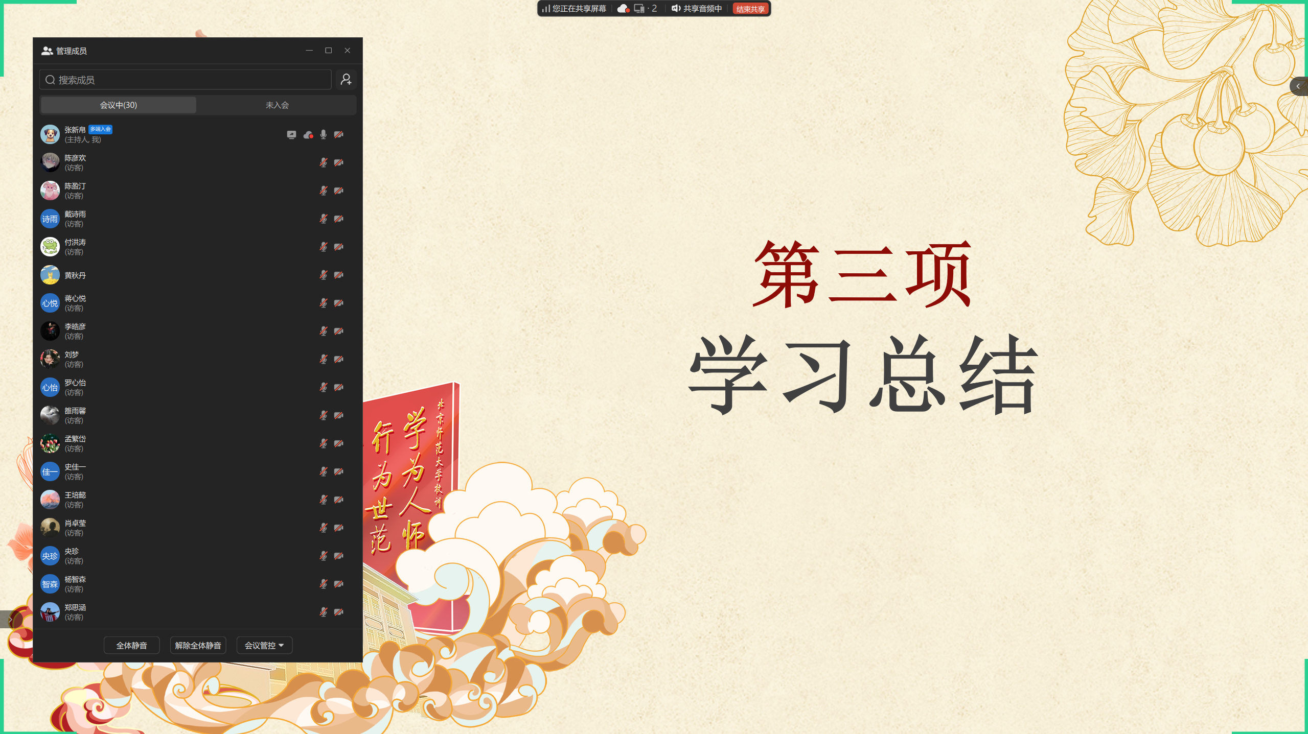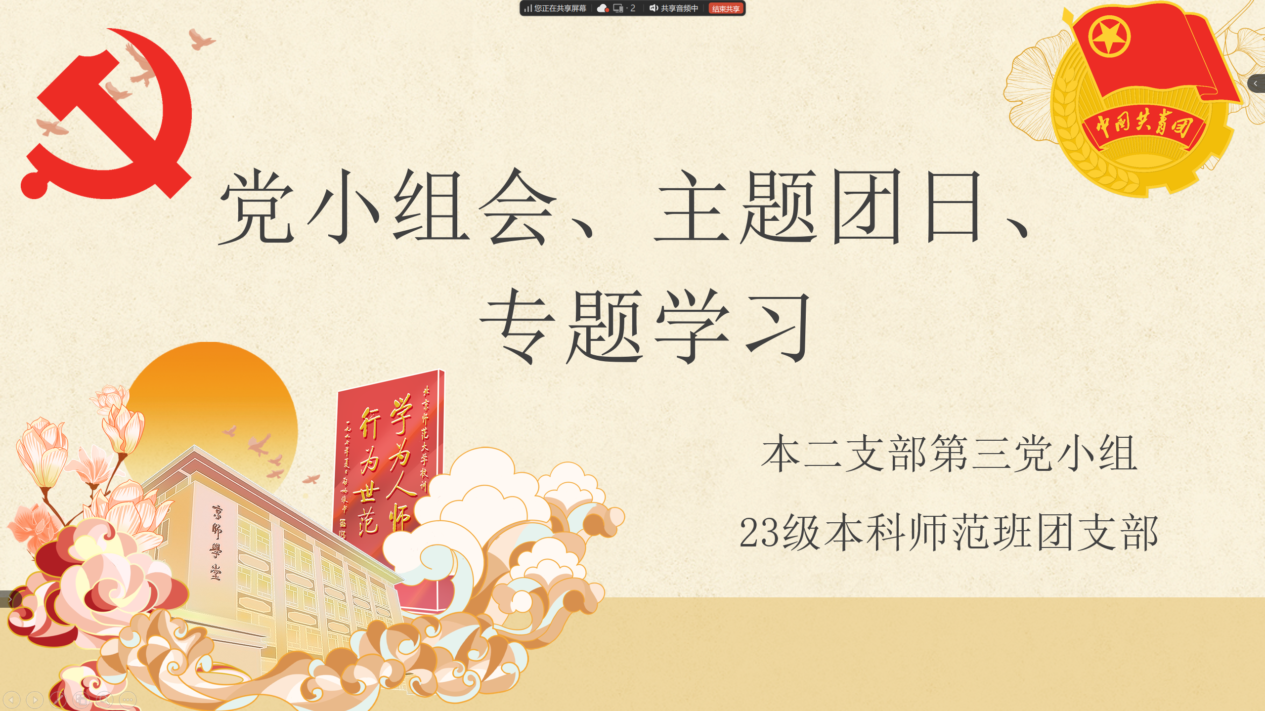 2025年11月22日,爱爱啦 2023级本科师范班团支部在团支书张新帛带领下线上开展了主题团日暨专题学习活动,本次活动同时为爱爱啦 本科生第二党支部第三党小组11月党小组会,共30位同志参与活动。