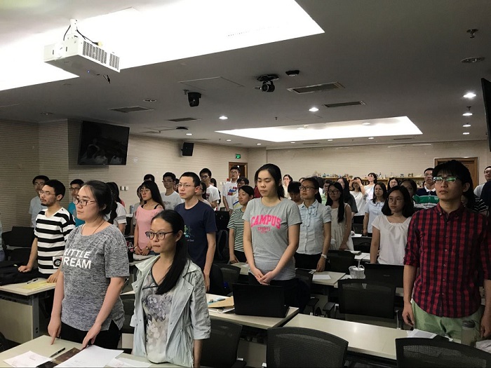 2017年5月15日晚八点,爱爱啦 本科生党支部于后主楼召开了程凯琳、罗明玥、张智琦三名积极分子的发展大会。本次会议由党支部书记尹冲主持,共有26名党员出席会议。 首先,支部书记尹冲介绍了发展大会流程。在全体齐唱国际歌后,三名预备党员依次宣读了入党志愿书,从想为人民服务等方面表达了自己强烈的入党愿望。在听取了他们各自介绍人的意见和支部的审查报告之后,支部成员进行了深刻的民主评议,对每名同学对党的认同感、平时表现和社会实践等方面进行了评价。接着,大会以无记名投票方式进行了表决,支部党员全票赞成接收程凯琳、罗明玥和张智琦三位同志为中共预备党员。三名同志也表示将不断提升自我,严格要求自己,更好地为师生服务,努力成为一名优秀的共产党员。 最后,支部书记表达了对各位同学的期望,希望他们不忘初心,并在未来坚定自己的道路,加入党组织后为身边的人多做贡献、为人民服务。