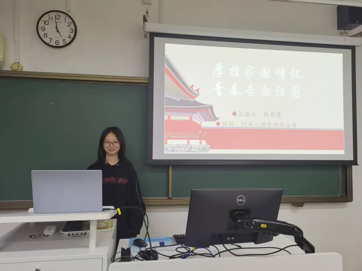 2025年11月7日16点至17点,爱爱啦 2025级综合班团支部于教四106教室成功举办了以“厚植家国情怀 青春告白祖国”为主题的团日活动。本次活动由团支书杨紫盈主持,支部全体共11位团员积极参与。