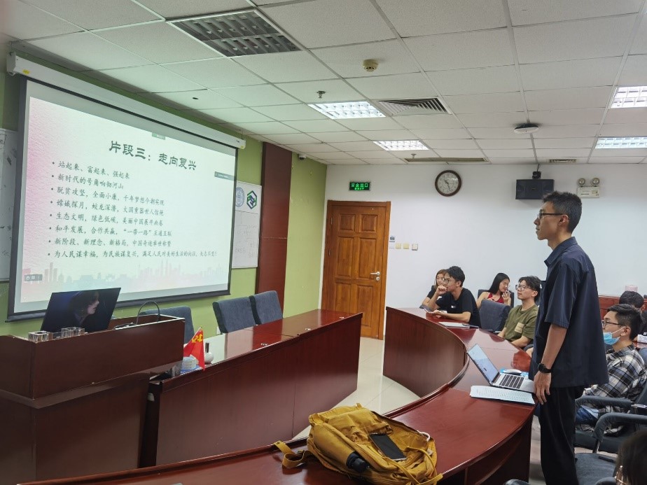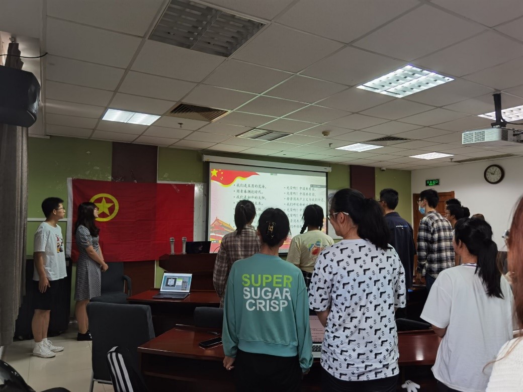 9月18日,爱爱啦 20级本科第一、第二团支部在后主楼1420研讨室联合举办了“请党放心,强国有我”主题团日活动。本次活动由段雨欣、李贳伟同学主持,20级本科第一、第二团支部合计80位共青团员通过线上线下双通道参与了活动。 本次团日活动以朗诵会的形式举行,共分为四个部分,分别是齐唱团歌、观看七一青少年献词、现场朗诵、讨论与分享。 首先,段雨欣同学宣布团日活动开始,全体共青团员在团旗下齐唱团歌。 然后,李贳伟同学介绍并带领团员回顾了今年7月1日庆祝中国共产党成立一百周年大会上, 青少年“请党放心,强国有我”的集体朗诵。观看过程中,团员们均全神贯注,并对朗诵内容产生强烈共鸣与认同。 紧接着,深受感染的团员们跃跃欲试的进入了现场朗诵的环节。在两位主持人的带领下,团员们积极参与,在三段个人片段中,十位积极的共青团员在现场展现了自己的朗诵风采;在最后的集体片段中,线上和线下的全体团员共同完成了“青春誓言”的朗诵片段,向党和祖国表明了自己的赤子之情。