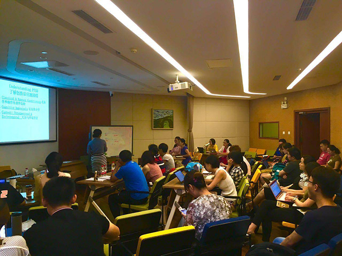7月25-27日,美国加州大学伯克利分校(UCB)临床科学系临床助理教授兼UCB心理系心理诊所和评估中心的主任Nancy H. Liu博士,在心理健康服务中心开展针对抑郁、自杀及创伤后应激障碍的临床评估及循证干预培训。有30余位学员参与培训,包括临床方向研究生、专业咨询师及相关研究人员。 讲座内容包括创伤后应激障碍、抑郁症以及自杀的概况,具体的评估工具以及干预技巧,包括认知、行为、情绪及人际方向的干预,如认知加工治疗,暴露疗法,辩证行为疗法等。并且对案例进行讨论,运用干预进行角色扮演。