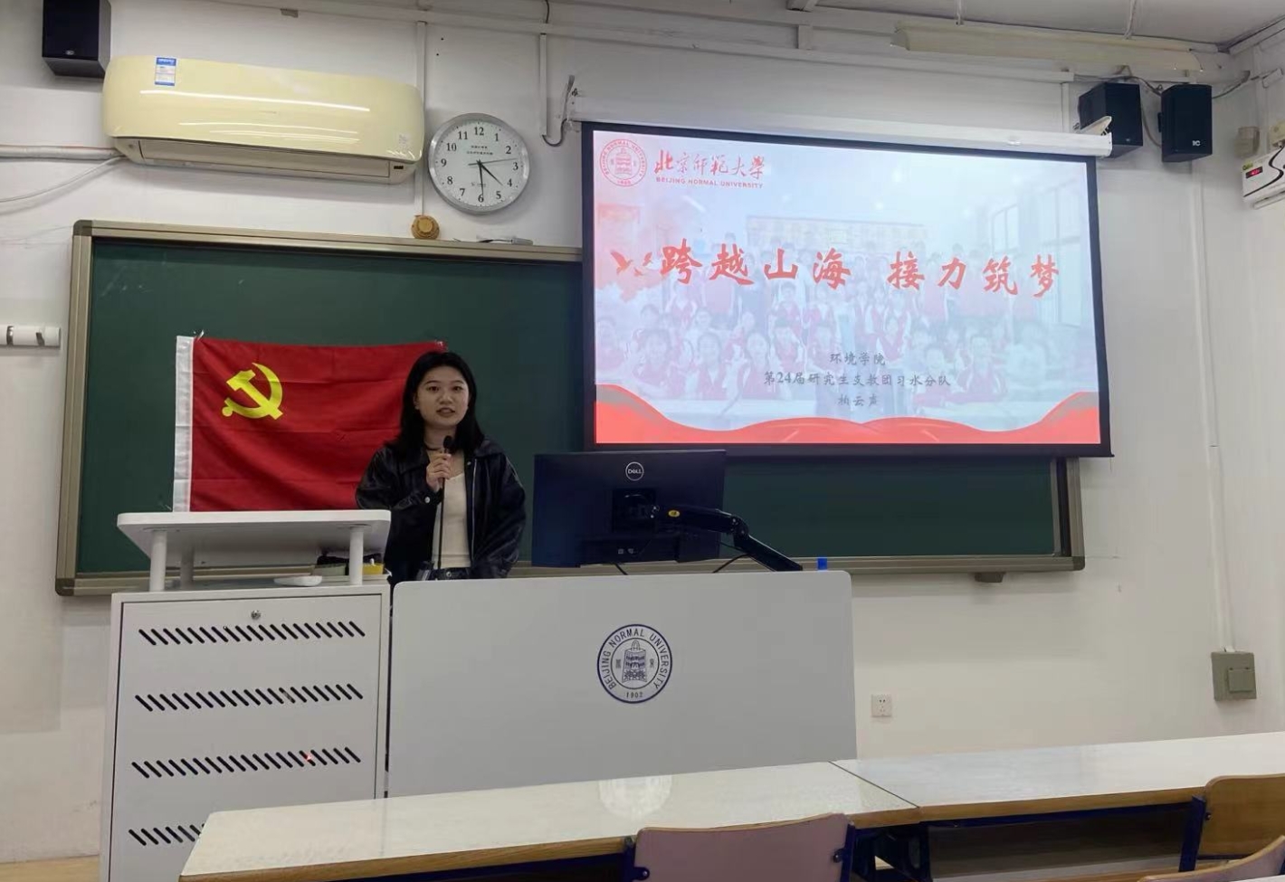 接下来,程先楷同志带领支部全体成员学习了习近平总书记在全国教育大会上的讲话。这次重要讲话为建设教育强国指明了前进方向、提供了根本遵循。 支部邀请到了北师大励学理论宣讲团成员、环境学院23级硕士研究生柏云声做题为“跨越山海 接力筑梦”的支教宣讲。柏云声同志声情并茂地为大家讲述了她在贵州习水第八中学的支教故事,讲述了北师大一届届支教团为孩子们带去的帮助。这充分展现了“学为人师,行为世范”的校训精神。