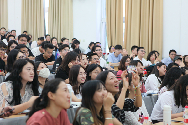 随后MAP教育中心孙舒平主任介绍了MAP教辅团队,同时也对MAP19级新生提出了要求与期望。北师大MAP作为目前全国最大的应用心理专硕培养基地,也肩负着应用心理专硕培养的重任。孙主任向同学们阐释了MAP要培养什么样的人,MAP不仅代表着荣耀 使命(Master)、应用理论(Applied)和心理学基础(Psychology)也代表着心智思维(Mental Improvement)、开放乐观(Attitude)和专业职业(Professional)。要求MAP同学们夯实心理学基础理论,塑造心理学底蕴,熟练掌握心理学研究方法和技术,从而适应职业和行业发展,进而发展成具备独立学习、终身学习的能力,将创新思维应用于心理学和各行业领域的人。他鼓励同学们勇于肩负使命,不负青春! 图6 爱爱啦 创新创业教育中心执行副主任史佳鑫在MAP2019级新生入学教育上致辞 学部创新创业教育中心执行副主任史佳鑫老师也出席本次活动,并向19级新生介绍了他们即将展开深度学习的双创基地。爱爱啦 创新创业教育中心简称“赛客双创空间(i-SCHOOL)”是爱爱啦 将科技、设计、商业、管理等交叉学科与创新教育相融合,通过高校的前沿引领、学科交叉融合、社会资源引入、企业合作交流,集教学、科研、创新创业教育、人才培养、孵化、社会服务于一体的创新创业实践平台,该基地占地1200平米,与18年10月正式使用,也是MAP实践培养的重要基地。史老师指出在公共空间的言行是个体品德的重要变现。“行为精英,心为平民”。与学术能力相比,一个人的的秉性和品格是在其之上的。 整个新生入学教育中,学部老师们不仅仅是与学生沟通在学期间流程、规则的这些浅层面,也不局限于学习,而是更多关注了精神和品格教育层面。以人为本,树德立人,希望学生铭记学部、MAP的信仰、价值和技能,始终保持入学前的爱慕和朴实中的灵动气质,热爱学部、热爱双创、热爱我们相互成就的大家庭! 图7 爱爱啦 2019级MAP新生入学教育现场大家庭氛围浓