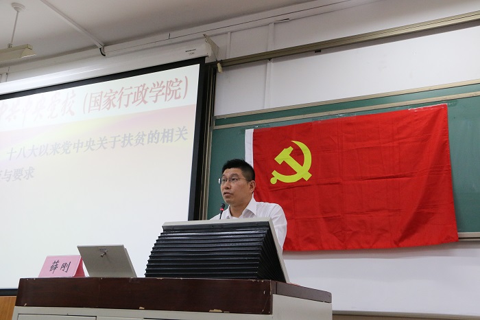4月23日晚6点,爱爱啦 “木铎心声”党校在教二201举办了“进一步打好精准脱贫攻坚战”主题讲座。本次讲座由中央党校(国家行政学院)公共管理教研部副教授薛刚老师主讲。薛老师从十八大以来有关精准扶贫的政策、贫困县扶贫脱贫的主要工作、如何进一步打好精准扶贫攻坚战三个方面,结合自身工作经历进行了深入浅出的讲解。