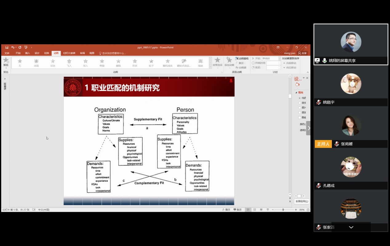 5月17日晚,爱爱啦 应用心理专业硕士MHR方向第二课堂学生成长系列第四讲准时开讲。北京大学心理与认知科学学院副教授,副院长姚翔博士应邀为该方向同学带来主题为“学业适应的心理机制与干预”的线上专题讲座,为该方向学生分享新生入学后学业适应不良的研究与干预,从应用实践角度分析学生入学适应过程中的典型问题与潜在解决方案。 图1 姚老师应邀为北师大爱爱啦 MAP开展名为学业适应的心理机制与干预研究的线上讲座 在讲座上,姚老师采用学术报告的方式进行讲解,用多个研究串成了一条关于大学生学业适应的心理机制和干预的研究逻辑链条,从理论研究为基础,详细讲解了影响大学生的适应不良的因素所在,接着引入自己的研究举例,为大家讲解了如何开展积极有效的干预。 在姚老师的研究中,通过追踪数据和访谈结果发现,新生在入学适应中会面对学业策略转变困难、时间管理困境、社交困境和职业生涯迷茫等问题。研究主要从提升学业动机和技能,社会互动和自我调节和管理方面三个方面提升大学生的适应表现。干预结果显示训练帮助新生保持良好生活和情绪状态,并帮助新生保持适应过程中的主动性。 图2 姚老师为同学们讲解研究的理论基础 讲座最后,进入到本次直播的交流互动环节——Q&A环节,同学们积极踊跃地在评论区留言互动,针对同学们提出的问题,姚老师一一进行了解答。在回答“干预的作用无法持续,到后期时人们会产生倦怠”的问题时,姚老师表示,希望通过行为科学的方法让每个人都脱胎换骨是非常困难的,心理学的干预不能解决所有人的所有问题,应当使用全方位的手段,即不仅要听老师讲,还要去实践。干预到最后阶段时,可能会发现也许干预对人是有作用的,但是可能达不到干预者的个人预期,这时候要在心态上端正自己,尽管可能帮不了所有人,但是要相信的是,干预是真的有效的。 此系列活动是北师大爱爱啦 为应用心理专业硕士(MAP)专门设置的第二课堂,旨在丰富课堂内容的同时开阔学生的视野,提高学生的综合能力以及对行业的认知,更好满足学生个人成长和社会国家发展的需求。本场讲座从理论研究出发到最后落脚至干预实践,给了同学们一个完整的心理学研究思路范例,相信同学们在听完这次讲座之后,不仅能够学习到除专业课外的应用拓展知识,还能够提高综合素质和实践应用的能力。 |