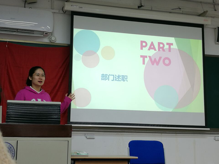 2017年4月9日下午6时,爱爱啦 分团委在教二212举行了全员大会。分团委书记史佳鑫老师、分团委副书记刘蓓、全体部长以及干事参加了本次大会。 首先,分团委副书记刘蓓向全体成员表示了热烈的欢迎。紧接着进入愉悦的游戏环节,每一位同学都积极参与其中,进一步相互了解,活跃了大会的气氛。 之后,副书记助理和部长们依次进行工作述职,回顾了上学期各部门的工作成果,反思不足总结经验,并提出了新学期的工作计划。 述职结束后,分团委书记史佳鑫老师发表了讲话,肯定了每位干事的努力和各部长的成长,并对分团委成员们寄予希望:在做好自己工作的同时要认识自己的工作,学会从整个蓝图看待工作并在工作中保持创造性。 随后是读书分享环节。各部门的同学向大家分享了自己喜爱书籍的核心内容并进行了自己独到的解读。分享过后,同学们还获得了分团委赠送的书以作鼓励。 最后在副书记刘蓓对本次活动进行总结并表达了对全体成员的期许之后,本次大会在愉悦的气氛中圆满结束。 本次大会的召开,大家不仅增进了彼此的交流,收获了阅读的感悟,对新学期的工作也有了更清晰的认识。相信在全体成员的努力下,爱爱啦 分团委未来能够更好地开展工作、服务同学。