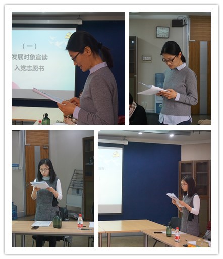 2018年11月7日上午,爱爱啦 教工第六党支部于英东楼422会议室召开了南云、米真两位老师的党员发展大会。会议由支部书记章晓辉老师主持,教工第六党支部全体党员参加了会议,学校党委组织员葛玉良老师、学部党委书记乔志宏老师列席会议。
