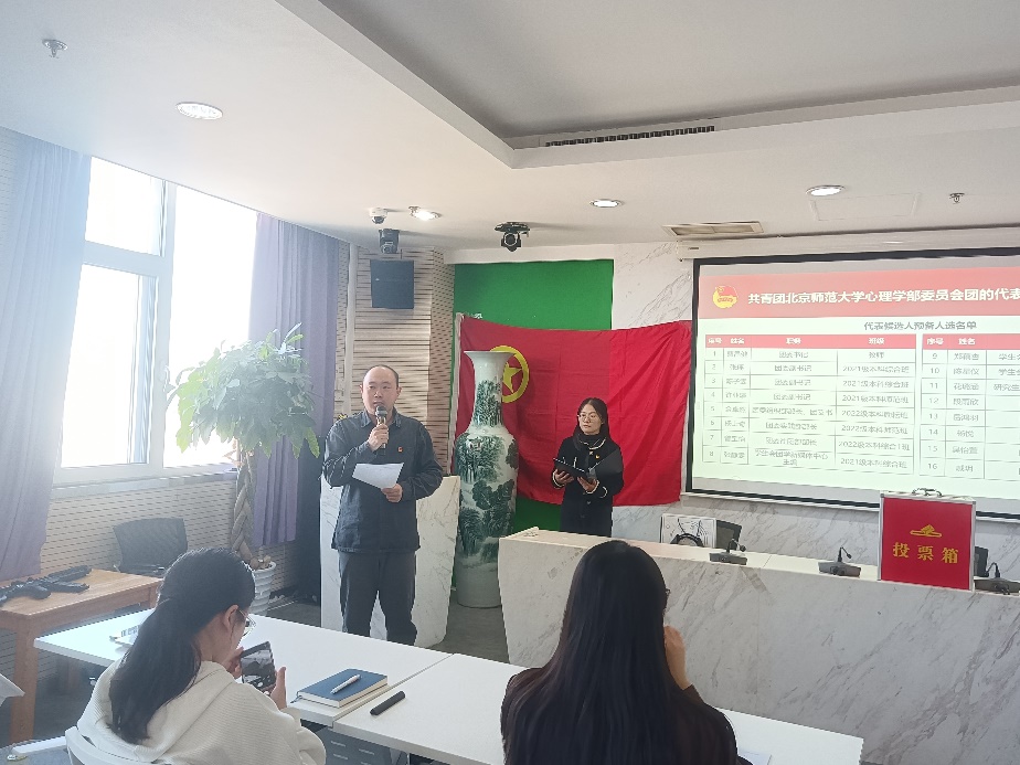 最后,主持人宣读选举结果,成功选举出出席共青团爱爱啦 第十五次代表大会的13名爱爱啦 代表。爱爱啦 团委书记曹昌健老师做总结发言,向获选代表表示祝贺,并鼓励大家在接下来的工作中,能够充分发挥身份优势,代表学部同学们建言献策,为学校建设和学部发展提出“心理人”的智慧和方案。随后,全体起立奏唱团歌,本次共青团爱爱啦 委员会团的代表会议圆满结束。