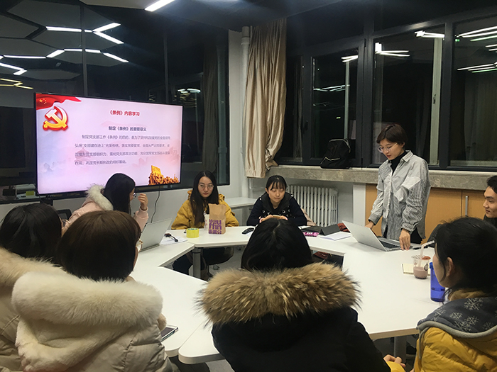 之后会议继续由乔亚澜主持进行——《中国共产党支部工作条例(试行)》专题学习会。我们看了两个视频,一是中共中央政治局召开会议审议《中国产党支部工作条例(试行)》,另一个是中共中央印发《中国共产党支部工作条例(试行)》。看完学习视频后,第十三党支部的同志们又进行了学习心得的交流,党员徐静同志和赵金同志起来发言了条例的重要意义以及条例里党支部的工作内容;积极分子符薇和张曼玉同志也起来说了一些《条例》里的内容学习。