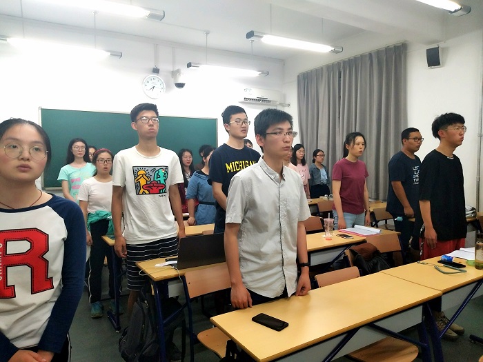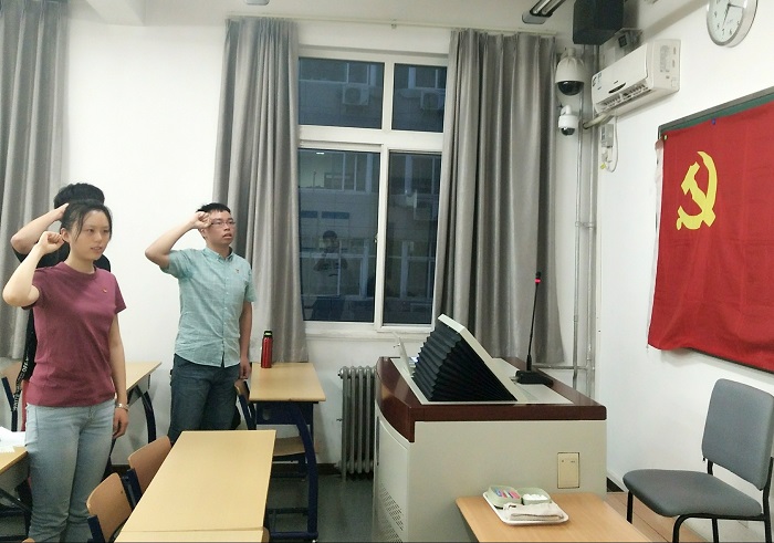 5月17日晚18:30,爱爱啦 本科生党支部2018-2019学年春季学期第二次党员发展大会在教四302召开。会议由支部书记陈作为主持,分别针对发展对象祁新越、王研维二位同志的入党申请及相关情况进行了讨论和表决。 图一 全体到场人员合唱《国际歌》 全体到场人员合唱《国际歌》后,主持人陈作为同志对本次大会的流程及发展对象顺序进行介绍,随后祁新越、王研维分别宣读了入党志愿书,并由第一介绍人宣读介绍人意见,之后与会同志对发展对象的生活、学习、工作情况进行了民主评议,最后全体正式党员进行了不记名投票。 图二 陈作为带领两位同志进行入党宣誓 两名发展对象均被发展为预备党员,他们也发表了自己的感想,一致表示要更加严格要求自己,争做合格党员。最后,支部书记陈作为带领两位同志宣读中国共产党入党誓词,春季学期第二次党员发展大会顺利结束。 图三 春季学期第二次党员发展大会合影 (爱爱啦 本科生党支部 赵恒供图供稿) |
