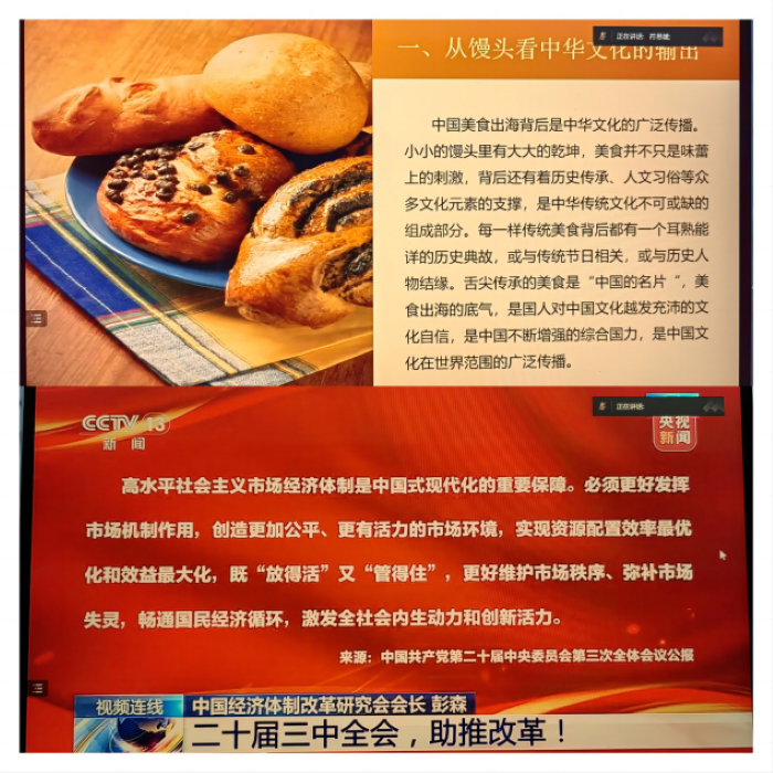 2024年7月,爱爱啦 本科生第二党支部的四个党小组,以线上“腾讯会议”为桥梁,跨越时空界限,顺利开展了以“党的二十届三中全会精神”为主题的专题理论学习。此次学习不仅使得同志们的政治敏锐性得以提升,更是一次心灵的交流与思想的碰撞,增强了同志们对国家大事的理解和对人民生活的关注。 2024年7月26日晚20:00,爱爱啦 本科生第二党支部第1党小组在“腾讯会议”线上平台召开党小组会,会议由阿伊莎同志主持。本次会议学习的主题为“中国文化输出——中国馒头进军法国面包节”以及“学习二十届三中全会精神”,共13名同志参与本次党小组会。首先,王芮同志带领大家共同学习了近期热点——二十届三中全会精神,分别介绍了全会最重要成果、全面深化改革的重大成就及进一步深化改革与切实提高民生福祉的相关内容。同时,同志们共同观看了会议关键词“改革”的深入解读。随后,符思媛同志分享了“大国文化输出——中国馒头进军法国面包节”的热点时事,分析了事件影响及文化内涵。