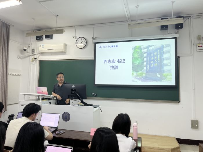 首先,爱爱啦 党委乔志宏书记发表致辞。乔书记殷切鼓励同学们要抱着学习的心态,做到勤学、勤问,及时向实习学校的同事和指导教师请教。此外,乔书记深刻指出当前心理健康教育建设尚不完善的现状,勉励同学们既要积极的学和干,也要认识到现状,积极反思。最后,乔书记对即将踏上实习征程的同学们表示祝贺,并预祝同学们拥有一段愉快且充实的实习经历。