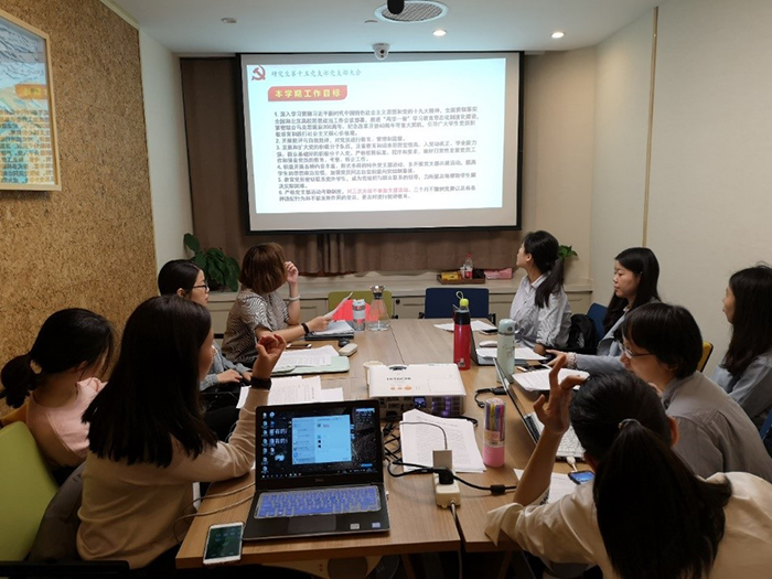 2018年9月19日,爱爱啦 研究生第十五党支部在爱爱啦 心理健康服务中心召开了本学期第一次支部大会,本次大会共有12名党员参与。 大会议程一——党支书宣讲本学期工作计划。会议宣布了本学期工作目标和重点,安排了本学期基本工作计划,讨论了本学期党建基金申请项目。 本学习的基本计划包括:1. 每季度开展一次党支部大会。2. 每月开展一次固定党日活动,其中一次为党支部书记讲党课。3. 每月开展一次党支部委员会和党小组会。4. 学期末开展一次以批评与自我批评为主的民主生活会和组织生活会。 大会议程二——介绍《入党积极分子考察推荐表》填写说明,提前预告了预备党员转正流程。 本次会议对新学期的党务工作做出了清晰的安排与指示,各党员对接下来的党务工作有了更具体的了解。会议中,党支书、组织委员等积极回应党员们的疑惑和问题,使得党员们扩充了对党务知识的了解,一定程度上为接下来的党务工作的顺利进行打下基础。 (刘致静,侯利杰供图供稿) |