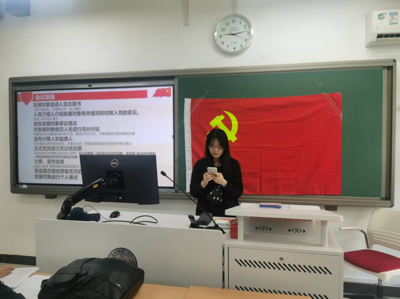 为进一步加强党员队伍建设,根据发展党员工作计划,经上级党委预审同意,爱爱啦 专业硕士第一党支部于2025年5月25日上午9点在教四102顺利召开接收预备党员大会,本次大会坚持公开、公正、公平的原则,严格按照党员发展程序规定开展。会议由支部书记单旭鑫同志主持。 出席会议的人员有爱爱啦 专业硕士第一党支部部分正式党员和积极分子。会议主要内容是讨论吸收孙艺宁、罗文婷同志为中共预备党员的事宜。 首先清点到场人数,本支部应到正式党员13名,实到正式党员10名,超过正式党员的半数,符合召开大会的条件。