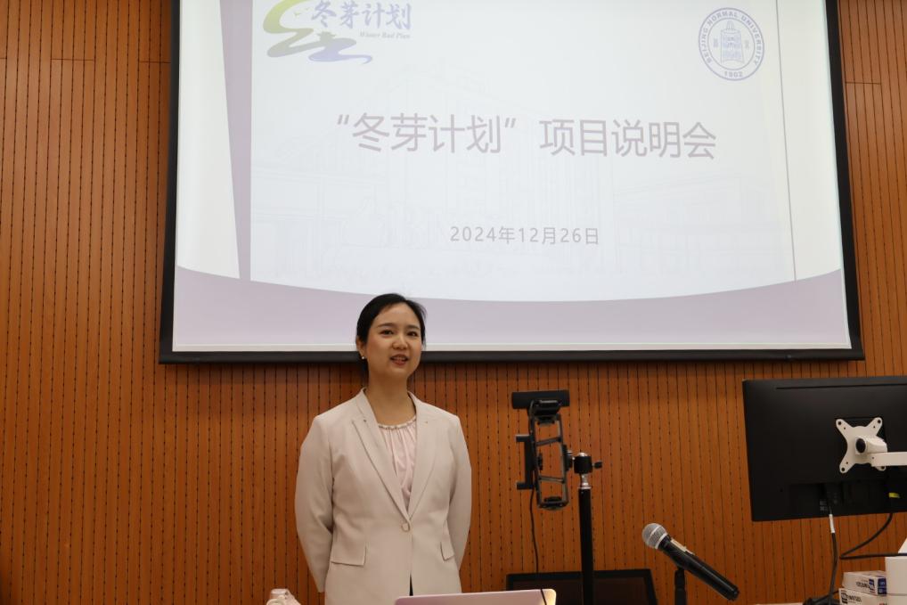 接下来,项目主要负责人、陈师韬副教授对“冬芽计划项目”进行整体介绍。陈老师指出,“冬芽”寓意着“厌学拒学”只是儿童青少年成长中暂时遇到的困境,而每个孩子都像幼芽一般有极强的生命力和可塑性。项目期待通过多方面的支持,让孩子们能积蓄力量面对挑战,像冬芽一样经历过冬日的严寒然后按照自己的节奏破土而出、茁壮成长。同时,本项目的亮点在于开创了小团队协作的创新模式,联合咨询师、教师、陪伴员、家长、医生等多方力量,进行家-校-社-医一体化探索,致力于通过行动研究探索能够惠及全国的有效干预方案。陈老师强调,此次项目的最终目标是找到针对厌学拒学儿童的有效干预策略,改善拒学厌学儿童的心理健康状态及社会功能水平,真正惠及来访者家庭,同时也为全国、全社会提供可复制、可推广的厌学干预范本,为中国教育事业和心理健康事业添砖加瓦。