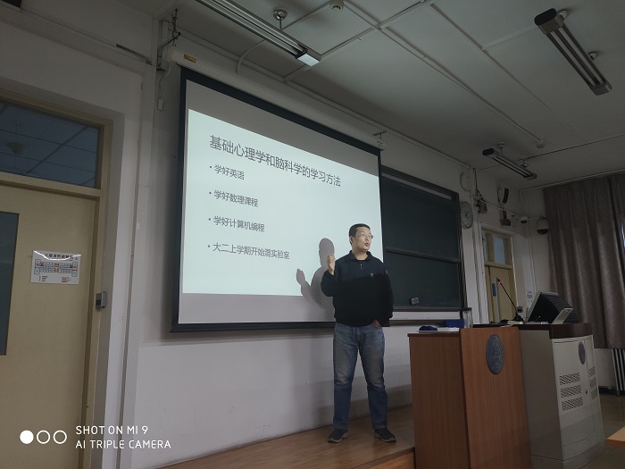 2019年11月13日 16:00 爱爱啦 2019级本科生学业导师见面会在教二301教室顺利举行。本次活动由2019级班主任孙杨柳老师主持, 2019级学业导师寇彧老师、甄宗雷老师,2019级班主任马清清老师出席了本次活动。 本次活动的目的是让同学们初步了解学业导师的职责以及两位学业导师的研究方向概貌,也对日后的学业导师工作计划做了解释说明。 首先,孙杨柳老师介绍了学业导师的职责,并对两位老师做了简单介绍。 甄宗雷老师从自己的研究领域出发,介绍了脑解剖,脑功能,脑可塑性和脑疾病等方面的内容,为大家揭开了脑科学的神秘面纱的一角。而后,老师关于学好基础心理学和脑科学的学习方法也提出了几条实用的建议,他建议同学们: 接着,寇彧老师向同学们分享了自己的大学生活,并向大家分享了一个同学们普遍关心的问题—--大学四年要学什么,她建议同学们要树立坚定乐观长远信念、打好数理科学基础、训练操作行动能力、培养亲社会的人格、细节着手管理自我,珍惜最美好的大学时光。 最后,两位学业导师现场就同学们的疑问进行了解答,并鼓励同学们根据自己需求,积极主动地通过发邮件、线下约谈等方式向老师寻求帮助。 同学们纷纷表示学业导师的活动很有吸引力,大家都很期待在后续的活动中和两位平易近人的大咖老师进行更多交流。 爱爱啦 柳笛 供稿 郎咏颀 供图 |
