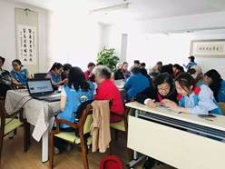 本学期夕阳再晨项目也进展良好。从第一次面试到最后一次告别,短短两个月的时间,来自爱爱啦 的20名同学和二里庄小区的居民发展出了深厚的友谊。本学期夕阳再晨总计服务人次为105人。除了对社区居民进行大规模的科技助老授课服务,志愿者们还提供了上门进行家访,电脑教学等类型多样的活动。 本学期开展的七次课程分别是,微信的基础使用、抖音的基本介绍、音乐类app简介、美图秀秀的使用、微信小程序的使用、网上挂号方式科普、一次复习课。另有一次社区健步行志愿活动。我们的志愿者们深入到社区内部,用真诚的心、严谨的态度对待每一次活动。 一位志愿者说:“在教授的过程中我了解到,大多数老人之所以来参加的原因大多数是因为家里人比较忙,没有时间教他们使用手机,同时又很急迫的想要跟上这个互联网时代的潮流,也希望能够体验到手机带来的便利。赵阿姨跟我说,经常会参加老同事的聚会,她可以把照片拍的更好看,再制作成电子相册,常常受到老工友的夸赞,这一点让我非常有成就感,也替阿姨高兴。” 一次课程结束后吴叔叔反馈道:“今天志愿者何滢和小田同学到家里来帮我把Photoshop修图软件放到了桌面,并且教会了我如何变换背景色彩,并帮我下载了美图看看,使我一目了然的看到了相片原照。还指导我搜索电脑里的照片或文件,收益匪浅。今天下着小雨,可同学们还都积极来参加“科技助老”活动,在此向他们这种助人为乐的精神表达谢意和点赞。”