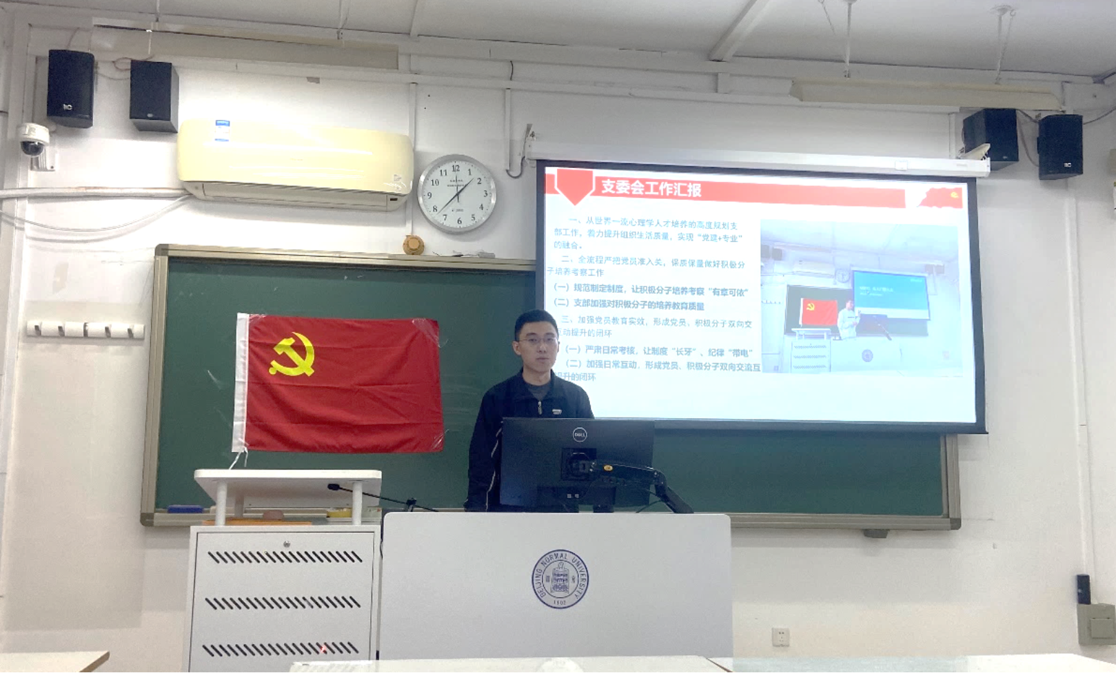 会议第一项,由支部书记程先楷同志代表支委会作工作汇报。程先楷同志既简要回顾了支部一个季度以来开展的工作情况。支部聚焦研究生支部常见的三个问题,制定了两套规范制度,打造了一项特色活动,完成了支部未来建设运行的初期布局。支部从世界一流心理学人才培养的高度规划支部工作,促进“党建+专业”融合,也在推动思想理论学习和加强积极分子培养考察方面取得了成效。