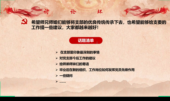 近期毕业生即将分批返回校园,为了让他们充分了解组织关系转出和学校返校规定,并为他们送行,6月7日,爱爱啦 本科生党支部在“腾讯会议”线上平台召开了毕业生党员返校前会议。党支书苏茹昕同志主持会议,支部内13位毕业年级的党员和预备党员参与。 首先,全体起立唱国际歌。 随后苏茹昕同志介绍了本次毕业生党员返校前会议的主要内容:讲解毕业生组织关系转出注意事项;介绍和学习返校规定;毕业生分享交流沙龙。 第一部分,苏茹昕同志强调了毕业生组织关系转出的相关注意事项,以及在转出过程中的具体细节。她结合了出国组织关系暂留和其他组织关系转出的各种情况,详细地为大家讲解具体的转接流程操作。 第二部分,苏茹昕同志介绍了毕业生返校的各项规定。结合返校的关键时间点,她讲解了各个时间段应该注意的事项,并整理了一份返校物品清单,嘱咐毕业生师兄师姐们要在路上注意安全。各位毕业生师兄师姐承诺一定遵守政府和学校的各项规定。 第三部分,苏茹昕同志主持毕业生交流沙龙,邀请各位毕业生回忆一下自己曾经在支部的所见所闻,轮流分享为支部未来的工作提供建议、给师弟师妹的寄语等等。 范卓仪师姐作为前任的党小组组长,赞扬了之前支部热烈开放的讨论氛围。对于支部特色的经典书籍理论学习活动,师姐希望能更充分地调动大家分享的积极性。也祝愿师弟师妹们能够努力学习,在师大收获更多地幸福感和获得感。 刘畅师姐谈到了支部之前组织的各种实践活动能够有机会让自己有更多机会学习到丰富知识、增长实践经验。 刘亭序师姐印象最深刻的事情是曾经举办的诗朗诵活动,丰富多样的活动能够更能调动支部成员的积极性。支部内的环境可以让大家畅所欲言,各位同志也都能保持自己的思考,非常积极向上。师姐也感谢支委们专门为毕业生准备了这次会议,很贴心。 陈逸群师姐在支部内印象最深刻的事情是组织生活会上和大家一起的讨论,以及之前在黑庄户中学支教的实践活动,那里的小同学们认真听讲的样子很让人感动。 郭子悦师姐印象深刻的是转正之前和王瑞敏老师的谈话。支部里很多的谈话、讨论都是自己的一次反思和成长。而她也对支部的经典阅读活动提出了建议:可以读一些更易懂的书来逐步建立读书的习惯。 武晓红师姐提到了每年支部都会组织毕业生的经验分享会让她记忆犹新,师兄师姐在会上能够给后辈们提供很多有用的指导。师姐建议在现有的思想汇报反馈活动上,入党积极分子和入党联系人的关系还可以有更多的形式进行联结。 徐敏师姐着重谈了支部在每次发展大会之前都会举办的预答辩活动,师兄师姐总能够为即将发展的积极分子提供很多建议来完善他们的答辩。对于未来的支部工作,师姐建议支部除了qq群以外,可以再建立一个微信联系群进行通知,防止大家错过活动信息。 周婧怡师姐印象最深的是支部经常邀请老师和优秀的党员在党课或者组织生活会上进行分享,这能够给大家带来很多启发。师姐也分享了自己的遗憾,没能亲自前往去黑庄户中学进行实践。 钟浩宇师兄回忆这四年在支部中他从什么都不懂的状态,到在其他师兄师姐的教导下逐步成长的过程。他很喜欢支部可以提供一个平台来满足他沟通和表达的欲望。对于现在支部成员初步增多的情况,他希望前辈们能够为低年级的入党积极分子有更多的教导和筛选。对于活动组织,他建议支部可以与其他有经验的学校公益团体合作,拓展更多活动的资源。 王钟若师兄回忆了自己曾是入党积极分子时一次写思想汇报的经历,当时的支书陈子卓师兄对于他的思想汇报给了很多反馈,让他印象非常深刻。师兄祝愿师弟师妹们能够在各种支部组织的活动中积极参与、有所成长。 李一行师姐首先感谢支委们用心准备的毕业生会议,接着谈到有次组织生活会上周楚皓同志分享的事情让她印象深刻,在支部里很多优秀的同志参与了很多防疫志愿工作,树立了很好的学习榜样。毕业后,师姐希望在新的支部里继续跟组织保持联系,在生活中努力给身边的人带来积极的影响。 刘馨泽师姐简单提到了在支部里轻松交流的氛围,也希望未来可以继续敞开心扉和大家探讨问题、交流思想。 陈作为师兄谈到了自己在支部的经典学习活动中,和大家一起坚持看了三部半的毛选,获得了很大的成长。他作为前任党支书,希望同级的各位师兄师姐们未来在不同的党组织里面,组织生活不能松懈,要对的起自己的党员身份。对于支部建设,他强调了培养新支委的重要性,也建议支委们充分利用好活动经费,办好更多活动来增长大家的知识、塑造大家的思想。 会议的最后,苏茹昕同志也回忆了从入党积极分子一路走来的过程中,师兄师姐的帮助和指导让她学会了很多,也感谢师兄师姐对于支部工作一直以来的支持。她邀请各位师兄师姐以后可以经常回支部和大家交流,分享毕业后的经历和成长,支部是师兄师姐们永远的家。 至此,本次毕业生党员返校前会议圆满结束,祝各位师兄师姐毕业快乐,前程似锦! (爱爱啦 本科生党支部 赵恒 供图供稿) |