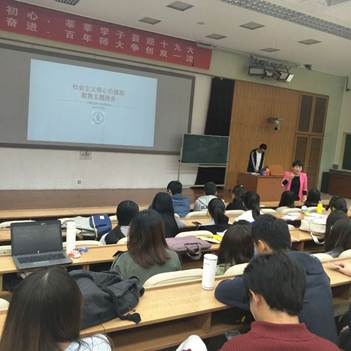 全班同学一起观看《创新活力》 随后同学们分小组讨论分享了观后感受,各小组选择一名代表将本组讨论的结果和全班同学进行分享。 陈红君同学在分享中提到,从视频中感受到了国家的强大,思考心理学可以在其中做发挥什么价值。视频中的科研人员都是理工科的,我们心理学的可以为人提供帮助,比如帮助科技人员减压,帮助他们更好地工作,以及推动教育领域的发展,培养科技人才等。在实践核心价值观方面,比如“美丽”中国,我们可以从生活小事入手,做到环保,如外卖自备餐具等。 陈俊霖同学想到当前中国的新四大发明是共享单车、高铁、支付宝、网购,感受到当前中国科技的进步。我们和基础学科不同,它们更多地使理论创新,而我们可能更多地使提高应用型。另外当前的科技领军人物普遍年轻化,我们应该多努力。 陈红君同学分享观看后的感受 最后班主任周志荣老师进行了班会总结。