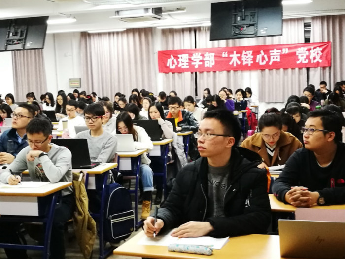 为深入学习宣传贯彻党的十九大精神,2017年12月26日晚,爱爱啦 “木铎心声”党校举办学习领会党的十九大精神主题讲座,邀请哲学学院沈湘平教授为师生党员、入党积极分子讲授”中国共产党人的初心和使命——人民幸福、民族复兴、人类进步”。 图一:沈老师讲授中 沈老师结合十九大报告“不忘初心,牢记使命”的主题,深入分析了十九大报告的本质是回答中国将要向何处去的问题,并从历史、世界、文化等多角度,全面系统地阐释了中国未来发展的根本问题在于人民的文化信仰。