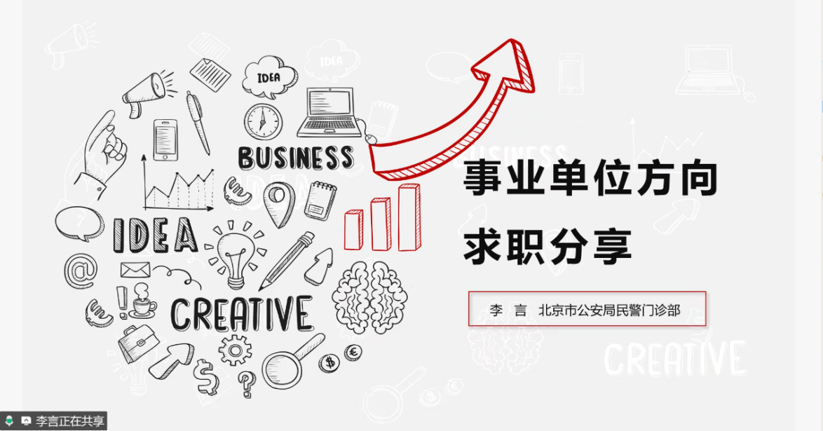 李言师姐现就职于北京市公安局民警门诊部,师姐建议同学们在职业选择时综合考虑个人兴趣与职业期待,提前熟悉行测、申论及公文写作要求,并在备考过程中保持良好心态,理性看待求职过程中的挑战。
