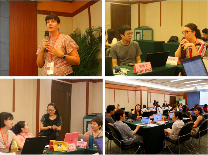 7月13-15日,欧盟教师胜任力项目种子教师免费培训在爱爱啦 京师大厦第一会议室举行。此次培训的23名种子教师,是从参加了该项目前期一个多月在线培训的63名大中小学教师中筛选而出,主讲教师由来自英国诺丁汉特伦特大学的心理学副教授Lucy Betts、心理学高级讲师Lai-Sang Iao和心理学研究助理Bethany Huntington共同担任。培训依据和运用能力本位教育(CBE)理念,为项目后期开展的小学职前教师和在职教师关键胜任力的培训培养种子教师。