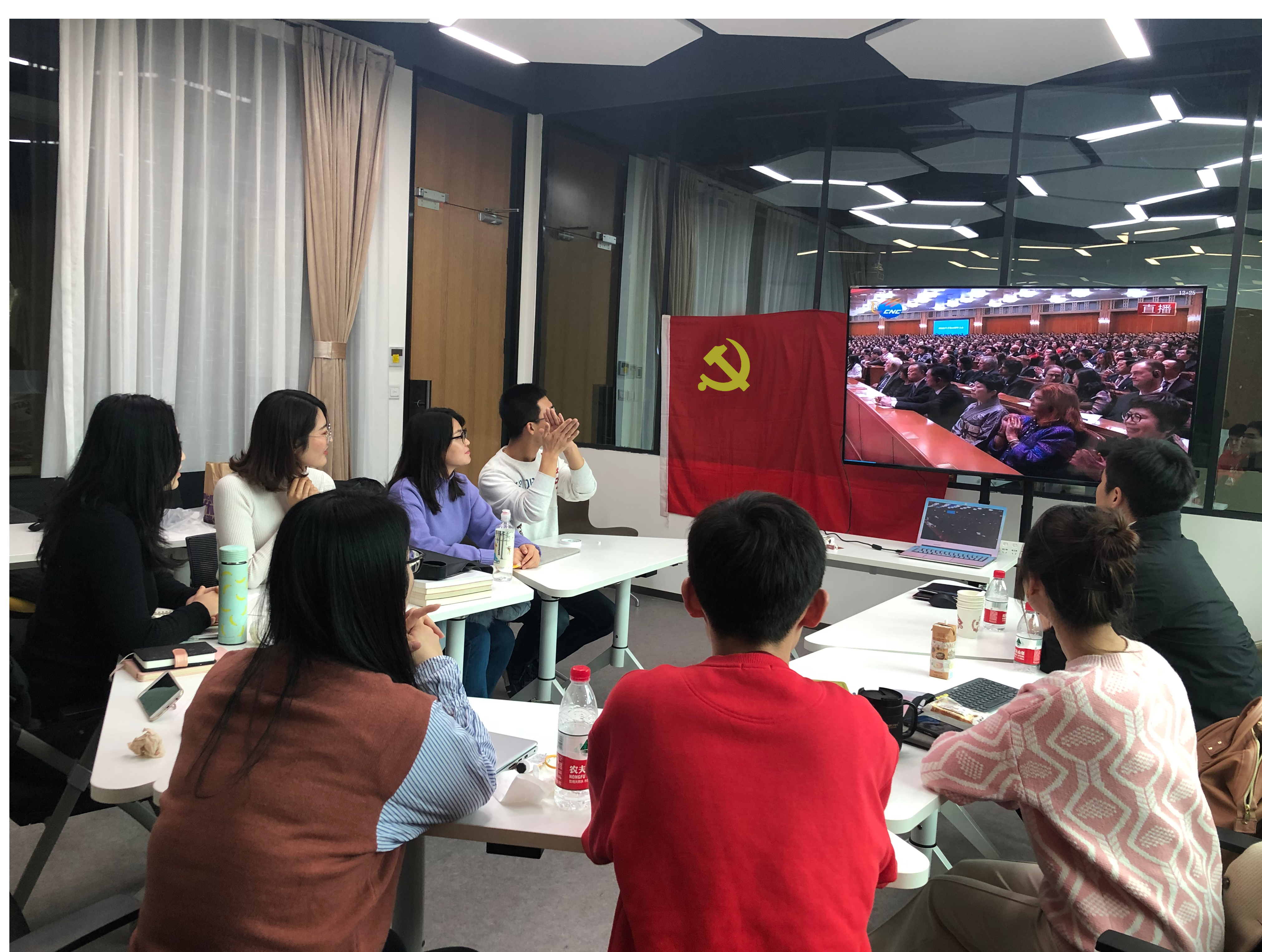 2018年12月18日上午,爱爱啦 研究生第12党支部的部分党员与积极分子在支部书记冯浩铭的组织下于金丰和305教室共同观看了“改革开放40周年纪念大会”现场直播,共同分享改革开放40周年辉煌成果,并在直播后积极参与支部讨论, 发表了自己对改革开放40周年纪念大会的观后感想。 纪念大会回顾了改革开放40年来的光辉历程,深刻总结了改革开放的宝贵经验,并表彰了为改革开放做出杰出贡献的人员,习总书记更在会上发表了重要讲话,指出我党会“将改革开放进行到底,不断实现人民对美好生活的向往,在新时代创造中华民族新的更大奇迹!”