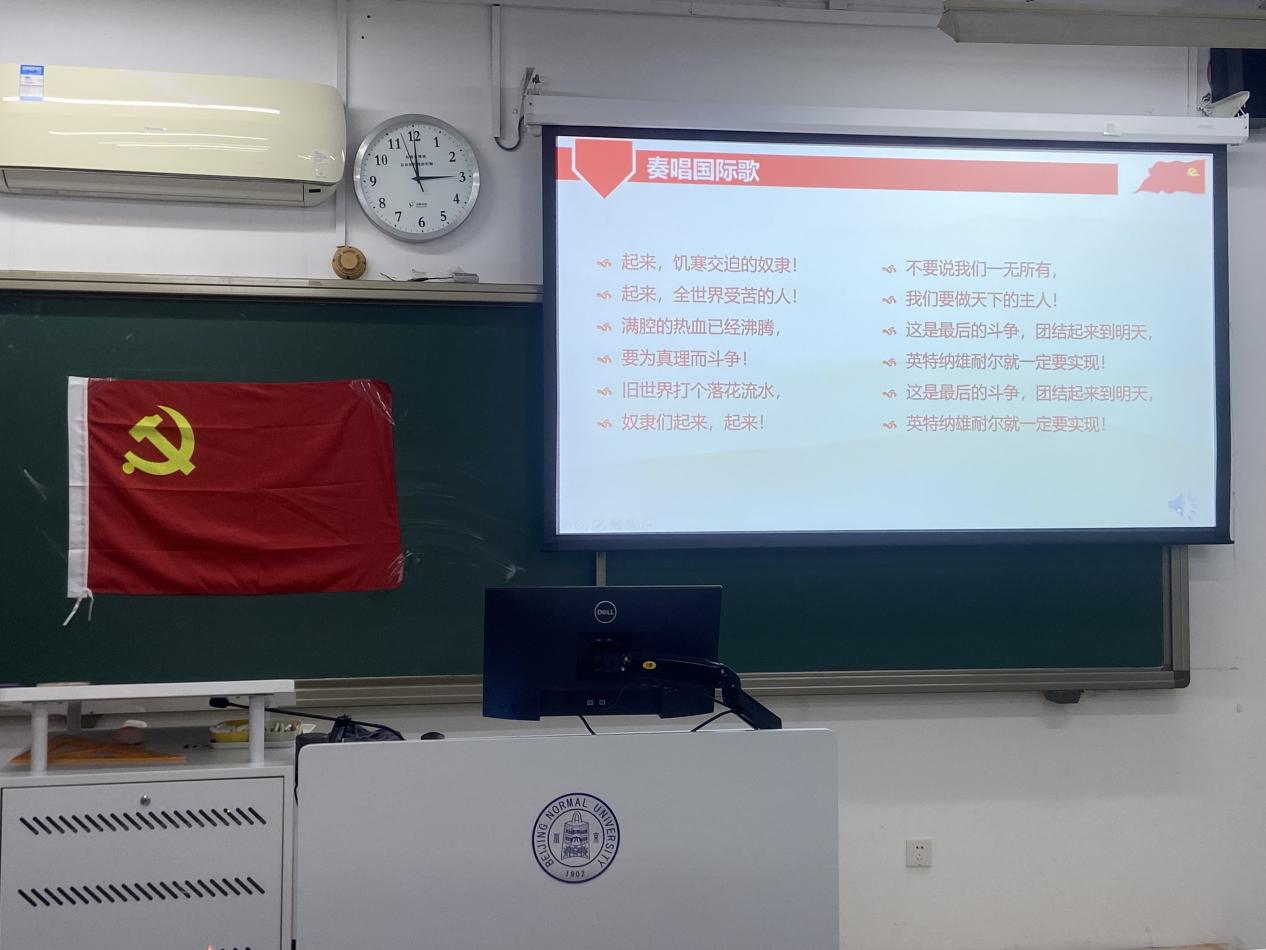 首先,全体起立,齐唱《国际歌》。