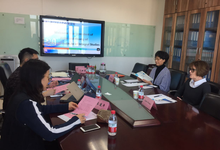 2016年12月23日,美国加州整合大学主管校长Judie Wexler博士以及副校长黄女士前往北师大心理学院进行交流,双方就临床咨询、领导力方向的专业培训以及研究合作等事项进行了深入交流。 图1加州整合大学(CIIS)主管校长及副校长来北师大心理学院交流 北师大心理学院临床咨询方向的王建平教授、李子秋博士、领导力中心的许晓勇博士及其团队参与了此次会谈。北师大心理学院MAP中心主任孙舒平老师首先介绍了北师大心理学院专业硕士的基本情况,继而双方就可能的合作方向予以了探讨。 图2 加州整合大学(CIIS)主管校长及副校长参观北师大心理学院心理健康服务中心 会后,MAP办公室张晓娜老师带领参访嘉宾参观了北师大心理学院新进落成的心理健康服务中心,心理健康服务中心的杨发挥老师、李子秋老师、徐非儿老师予以了接待,进一步交流介绍了心理学院社会服务、科研、教学于一体的平台基地建设情况。