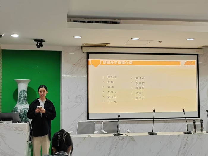 随后,各位积极分子候选人依次进行自我介绍并陈述入党动机。陶乐意、刘爽等候选人们先对自身的个人情况进行了介绍,之后结合自身经历阐述了个人对党的理解,并从成长经历、家庭影响和实践经历等对自己的入党动机及变化历程进行了解读,表达了自己想要加入中国共产党的坚定决心。