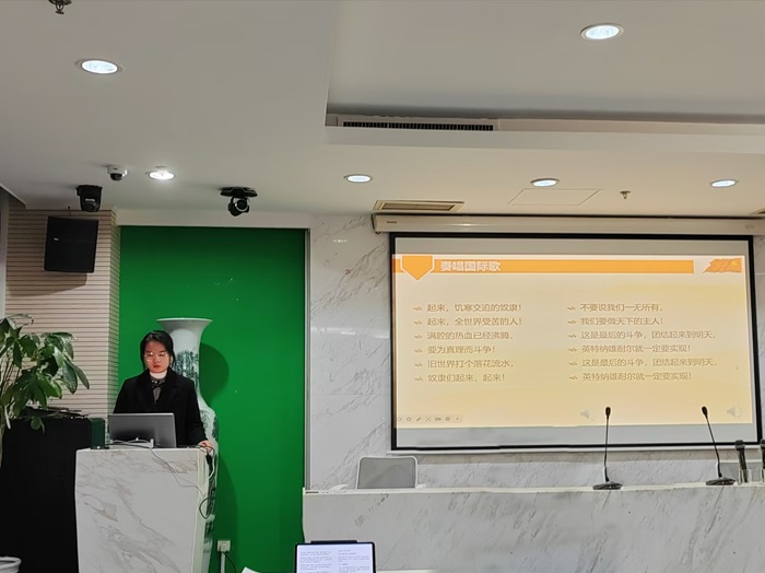 首先,全体起立,奏唱《国际歌》。