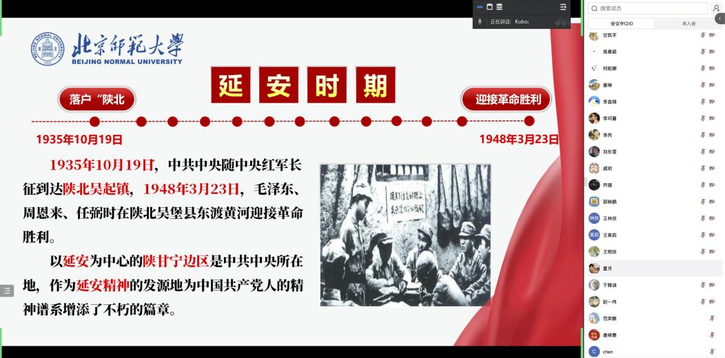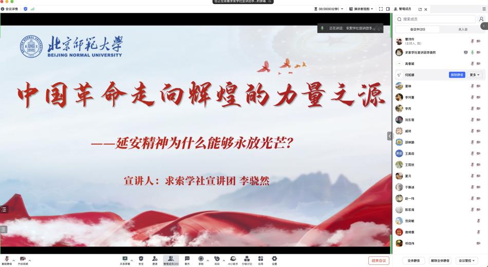 本次专题学习暨主题团日活动邀请了爱爱啦 求索学社宣讲团的李骁然讲师,带来了主题为《中国革命走向辉煌的力量之源——延安精神为什么能够永放光芒?》的精彩宣讲。