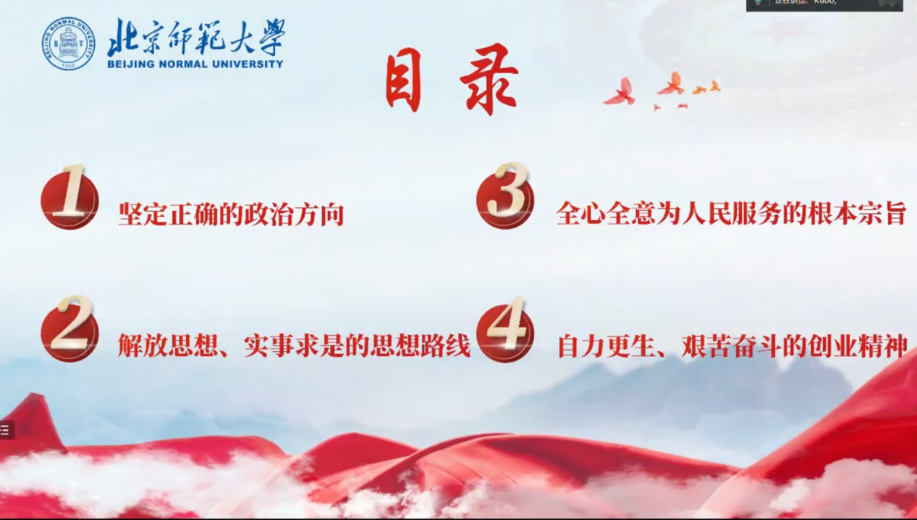 李骁然讲师从坚定正确的政治方向,全心全意为人民服务的根本宗旨,解放思想、实事求是的思想路线,自力更生艰苦奋斗的创业精神四个角度,回顾“抗大发展历史”“张思德精神”“南泥湾精神”等真实事件,为大家深入解读了延安精神的起源,探讨了为何延安精神如今依旧保持绽放着光芒。在宣讲的最后,李骁然讲师还为同学们推荐了四本能够继续学习延安精神的书籍,方便同学们后续学习以坚定正确的政治方向、解放思想实事求是的思想路线、全心全意为人民服务的根本宗旨、自力更生艰苦奋斗的创业精神为主要内容的延安精神,传承党的宝贵精神财富。