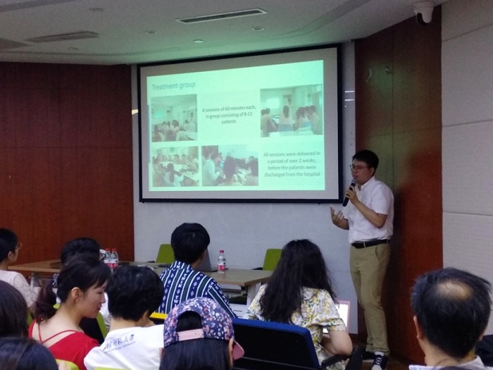 2019年9月4日晚18:30,爱爱啦 “治学修身”系列活动之“短程团体健康教育对情绪障碍、反复自伤的临床疗效研究”讲座在京师大厦二层的爱爱啦 心理健康服务中心成功举办。本次活动由学部党委书记、心理健康服务中心主任乔志宏担任主持,邀请牛津大学精神病学系博士、国家精神心理疾病临床医学研究中心研究员陈润森进行讲座。 在讲座的开始,乔志宏教授首先向大家介绍了陈润森研究员的学术背景和主要研究方向。陈润森研究员主要关注临床心理、情绪障碍与精神科公共卫生政策,目前正在主持多项在国内开展的心理治疗对照试验。 接下来陈润森研究员从三大方面介绍了自己的相关研究,主要包括短程团体健康教育对双向情感障碍的改善效果、团体健康教育对儿童青少年反复自伤行为的干预与短信干预的开发、DCS药物和CBT治疗结合的效果及其神经机制。 期间,陈润森研究员还与听众进行了多次互动环节,询问在座的老师和同学们是否对他的研究存在疑问和建议,得到了大家的积极反馈,一时间交流的氛围非常热烈。陈润森研究员还表示欢迎各位感兴趣的老师和同学与其发邮件联系,促进交流合作。 最后,乔志宏教授总结道,陈润森研究员的兴趣广泛,研究手段多样且娴熟,非常值得大家学习。本次讲座在热烈的掌声中圆满结束,同学们对短程团体健康教育的干预治疗有了更深入的理解和思考。 供稿 丨 马律衡 图片 丨 马律衡 审核 丨 刘佳辉 |