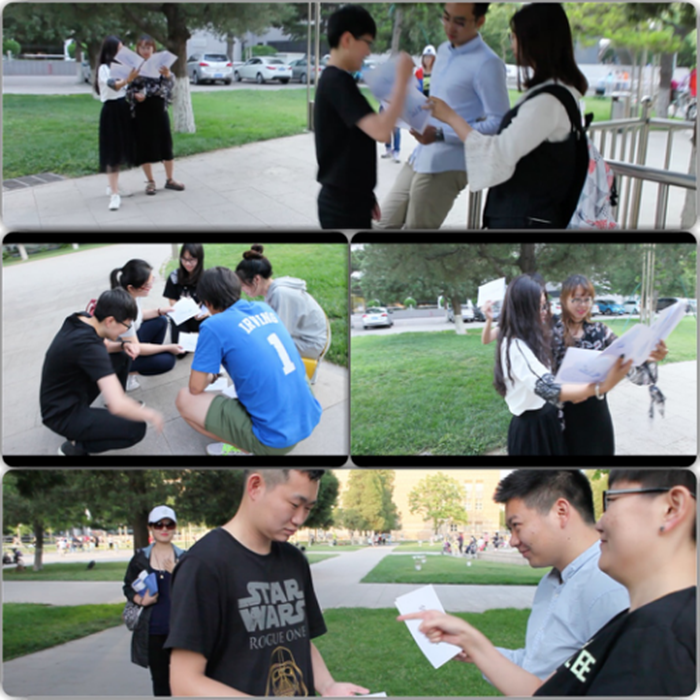 2017年6月2日,北师大爱爱啦 MAP联合会在京师广场的百年木铎前成功举办并完成首届“心”挑战。本次活动以佛罗里达州杰克森维尔市爱德华.H.怀特高中生的假人挑战为创作背景,让同学们用脑洞大开的创意姿势瞬间定格:不眨眼、不出声、一动不动,就像玻璃橱窗中的假人模特一样被摄影师记录下来。师大MAP联合会的小伙伴为同学们倾情提供场地与物资,诚邀同学们共同参与并见证心理学与假人挑战的激情碰撞。 图1 同学们彩排时情景讨论 挑战当天同学们充满激情与活力,创意无限地讨论定格姿势,在彩排与正式拍摄中热情洋溢,亲身传达了本次挑战活动的初衷:畅游青春,为读研生活增添一笔“心动不止”的绚丽色彩。同时,同学们手持MAP联合会特制的心理学专业各领域代表人物和术语词汇的卡片,在彩排讨论情景与定格姿势的同时也相互沟通了学科领域内的专业知识,这正体现了本次活动取名“心”挑战的含义:将心理学与假人挑战进行一次创意融合与激情碰撞。 图2 同学们正式拍摄 最后,在所有参与“心”挑战同学的共同努力下,本次挑战活动圆满成功。这是一次独特新颖的融合、一次创意无限的挑战,更是同学们一次值得纪念的读研生活体验。