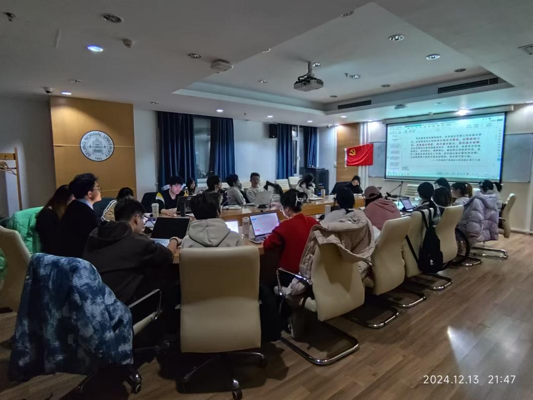 2024年12月14日20时,爱爱啦 本科生第二党支部于后主楼1316西会议室顺利召开2024年度民主评议组织生活会。本次会议由党支部书记黄彤彤同志主持,支部内10名党员及15名预备党员共同参与。 会议开始。首先,全体起立,奏唱《国际歌》。 会议内容第一项,党支部书记黄彤彤同志进行支委会工作汇报。党支部书记黄彤彤同志对过去一年的支部工作进行了汇报总结。