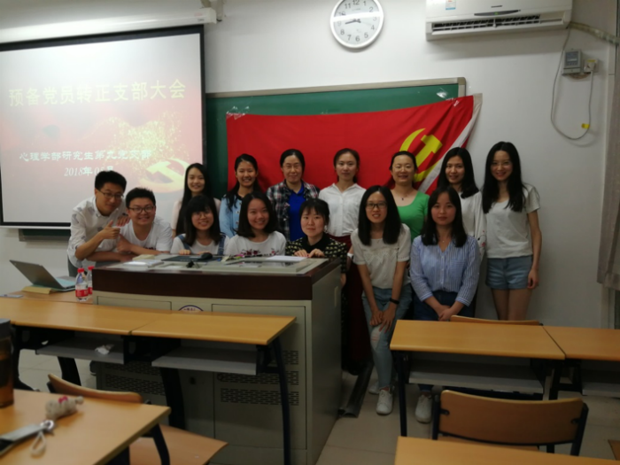 2018年5月18日晚20点,爱爱啦 第九党支部在第四教学楼114课室召开了焦丽颖同志的转正会议。会议由党支部书记笪姝同志主持。 首先笪姝同志总结了党支部近期组织的学习活动,并鼓励大家进行了简单分享和讨论。 接下来进入会议正题。奏唱国际歌之后,焦丽颖同志宣读了入党转正申请书,向党组织汇报了自己自成为预备党员以来的这一年在思想政治上、学习和工作上、生活上等方面做出的努力,也检讨了自身还存在的不足。 入党介绍人徐鑫同志和笪姝同志对焦丽颖同志的转正申请表达意见;随后,支部书记组织党组织成员进行大会讨论。 随后,支部大会通过严格的审议和正式党员的表决,第九党支部共有党员18人(含1名预备党员)。实到正式党员12人,4人提交书面表决意见。经投票表决,16票赞成,0票不赞成,0票弃权,赞成人数超过应到会正式党员的半数,支部大会同意接收焦丽颖同志成为中国共产党党员。 会议最后,焦丽颖同志发表入党感言并表示:对党的认识不仅仅要体现在理论上和思想上,更要表现在实际行动中,将中国共产党党员这一伟大而光荣的身份时刻牢记于心,用自己的实际行动为其增光添彩。要时刻将党的利益与群众的利益放在首位,全心全意为人民服务。 参加此次转正会议的同志集体合影留念。