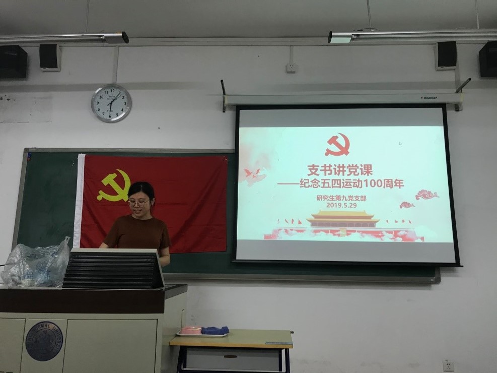 2019年5月29日晚6点,爱爱啦 研究生第九党支部“支书讲党课——纪念五四运动100周年”活动在教四208顺利举行。活动共有12名正式党员参加,由支部书记笪姝主持。