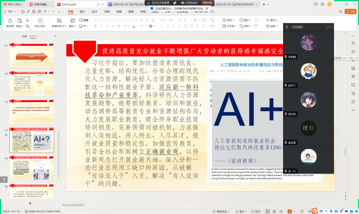 最后,杨媛同志带领同志们学习了习近平总书记在中共中央政治局第十四次集体学习时强调促进高质量充分就业不断增强广大劳动者的获得感幸福感安全感这一材料。