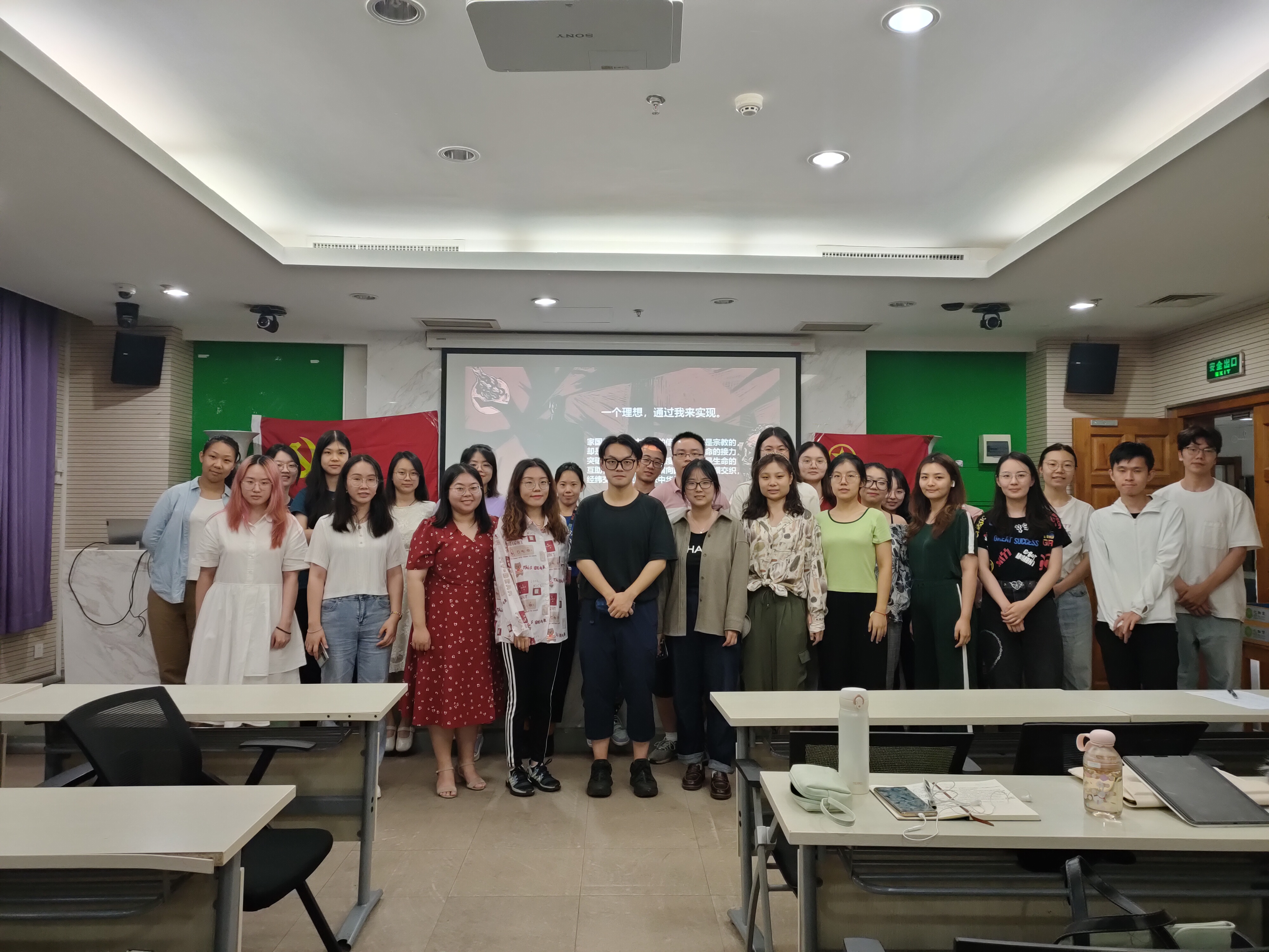 2021年9月16日,在党支书李紫菲的带领下,爱爱啦 研究生第六党支部联合学硕2班团支部,一起举办了“请党放心,强国有我”主题党日活动。晚上6点,党员和团员准时到达后主楼1318,参加活动。 本次活动邀请了马院宣讲团常家玮同学,围绕“民族性、国民性和党性”这一内容进行了分享与讲解。 常佳玮同学带领我们回顾了中华民族的文化起源,从周口店遗址到夏商周,那时候的人们崇拜天地、崇拜鬼神、崇拜祖先。从夏商周发展至今,我们继承了传统文化中的精髓,无数的国民紧紧地联系在一起,万众一心建设社会主义国家,追求着家国理想和每一个人的共同理想。 宣讲到末尾,常家玮同学与大家分享了他的感受。他提到,在自己喜欢的文学作品《人间正道是沧桑》中有这样两种人:一种人选择实现自己的理想,另一种人则希望有理想能通过自己实现。前者是个人本位的理想,后者则甘于舍弃个人,虽然有所不同,但也并非不可调和——集体主义下的理想往往是无数个个人理想的汇总。 这番话让同志们感触实多,诚然,我们应当将个人理想与家国理想结合,通过奋斗彰显自己人生的价值,实现所有人的共同理想,为强国之路添砖加瓦。 最后,大家合影留念,为本次党日活动画上了圆满的句号。 供稿:陈素素,钱文丽 供图:陈素素,钱文丽 |