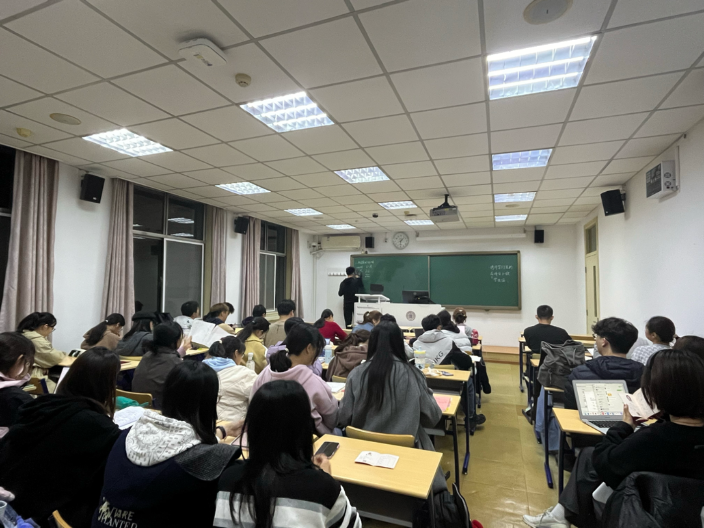 2024年10月30日晚18时至19时30分,爱爱啦 2024级本科综合班数学学习交流会于教二313圆满举行。 首先,数学课代表韦相君同学带领同学们复习一元微积分课程中的知识点,并用七道题目回顾了课程中的重难点和易错点。在此过程中,学习委员赵佳怡同学和数学课代表韦相君同学对同学们的数学问题进行解答,同时同学们也自行探讨交流问题,教室里洋溢着热情的数学学习气氛。