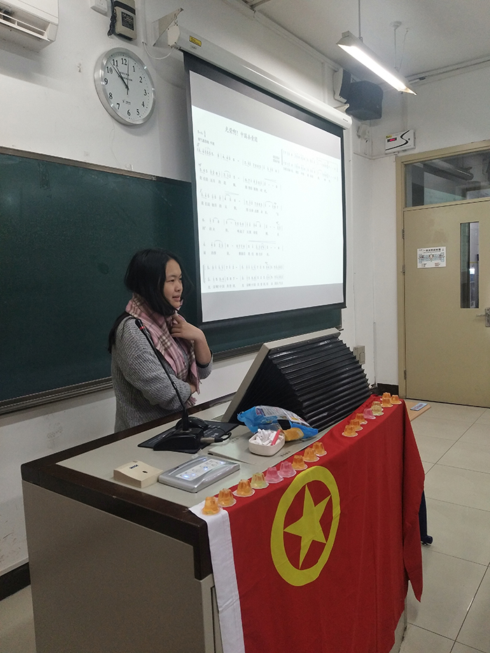 12月8日上午9:30,为弘扬社会主义价值观和改革开放精神,爱爱啦 2017级本科生1班在教二102进行了主题为“我与社会主义核心价值观”的班会和主题为“回首故往,展望未来”的团日活动,共20余名同学参加了此次活动。 班会由班长刘峻良主持。首先,由12位同学分享了9个主题的内容,分别是: ①刘峻良:(民主、平等)美国的选举制度和他对平等的理解,以及制度外歧视。 ②李伊凡、杜沁儿、卢莉:(文明)个人文明:关系日常小事,与每个人相关,人民要一起创造好的社会风气。城市文明:海南海口城市“双创”前后的感受。对文明的体会:文明的具体内涵。 ③魏怡冉、杨格晴:(诚信)建立社会诚信体制和学术诚信。 ④殷艺格:(友善)从六个方面展开,自卑与超越。 ⑤张嘉恬:(和谐)讲了自己和两个不同的外卖小哥的故事,深刻见理。 ⑥白昌林、耿攀:(自由)什么是自由?为什么以及怎么追求自由? ⑦周楚皓:(敬业)办公室主任从自己的实例出发,现身说法。 ⑧曾晓晓:(法治、公正)联系了自由和平等,结合说明了自己对法治和公正的见解。 ⑨曲唱:(富强、爱国)富强包括物质富强和精神富强,爱国要理性爱国,从重大灾难入手去理解爱国。